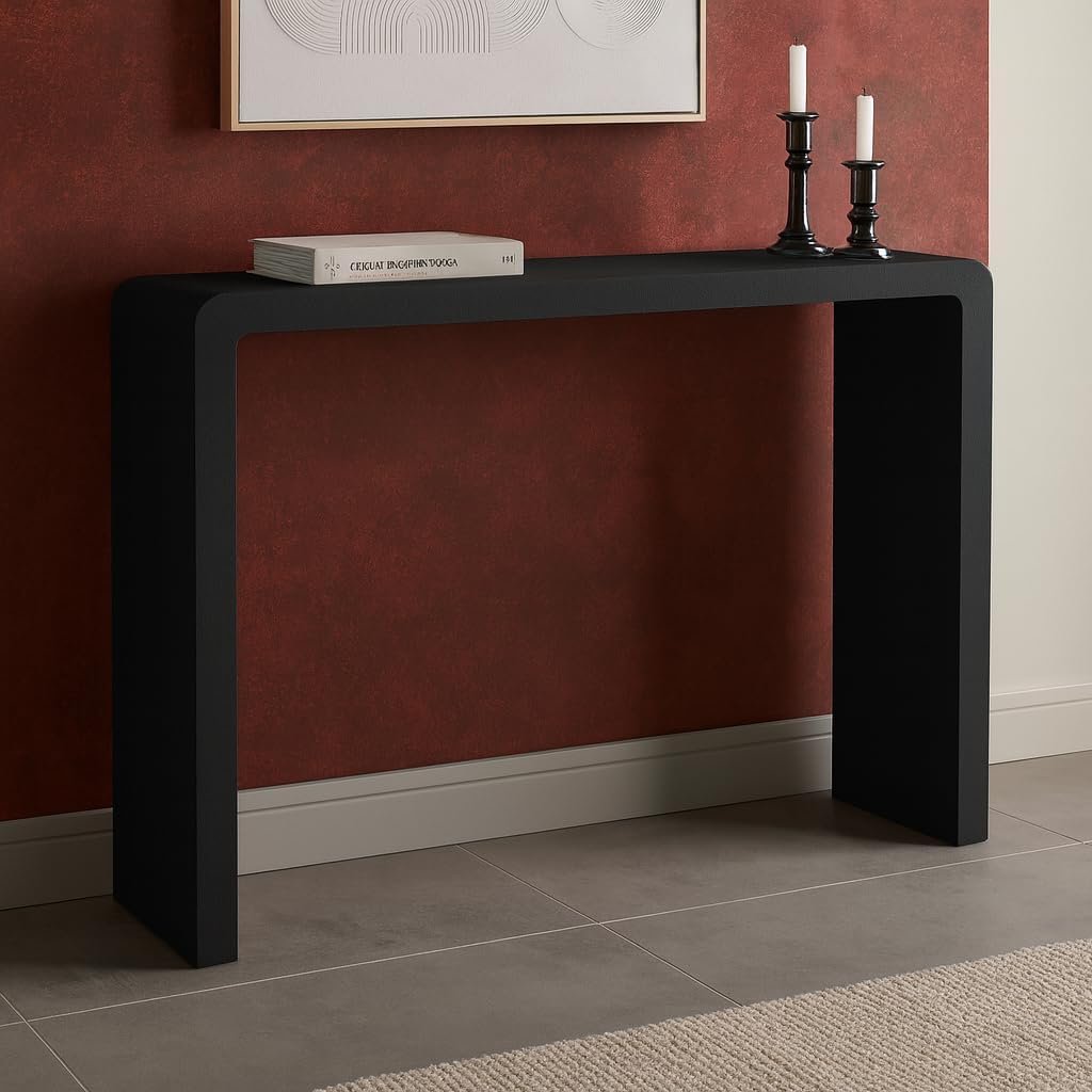 Karnak Edgy Console Table – Modern MDF Rectangle Console with Plaster Finish for Living Room, Hallway & Entryway (Black)