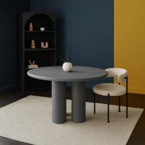 - ELEGANT & FUNCTIONAL DESIGN – The Karnak Ember dining table combines a smooth circular top with a textured finish, adding a modern luxe touch to UAE dining rooms. طاولة طعام حديثة.
