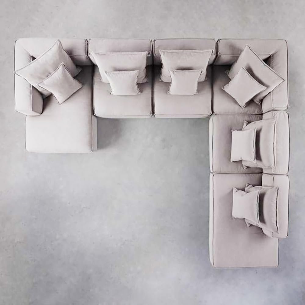 Karnak Hansen 6 Seater Polyester Sofa Couch Modern Design Design Sectional Sofa Couch For Living Room Color – Pale Silver