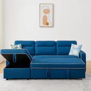 Maximize your space without compromising on comfort or style with this modern L-shaped sofa cum bed. Designed to fit seamlessly into any corner, it’s the ideal solution for compact living rooms, studio apartments, or guest rooms. This versatile piece easily transforms from a cozy sofa into a comfortable bed — perfect for movie nights, overnight guests, or everyday lounging. Featuring a hidden storage compartment under the seat, you can keep blankets, pillows, and clutter neatly tucked away. Built on a sturdy metal frame for long-lasting durability, it also boasts soft cushion-back support and sleek track arms, blending contemporary aesthetics with everyday comfort. Whether you’re furnishing a new home or upgrading your current setup, this all-in-one sofa bed brings functionality, comfort, and smart design to your living space.