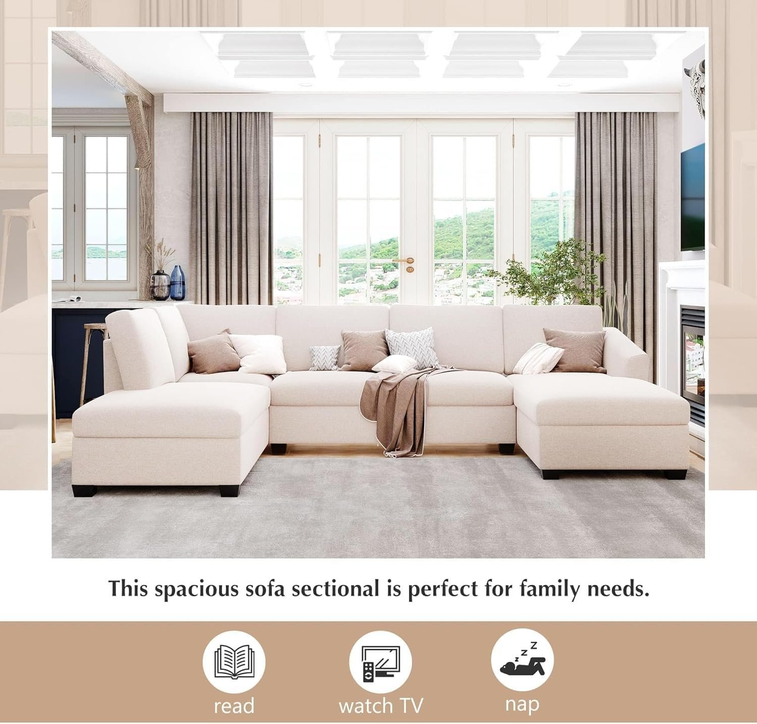 Karnak Jattebo 5-Seater Polyester Sofa Couch Modern Design Design Sectional Sofa Couch For Living Room Color (Beige)