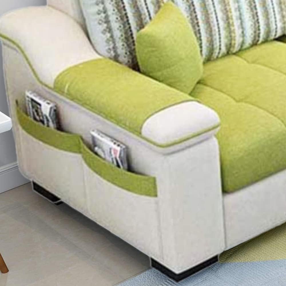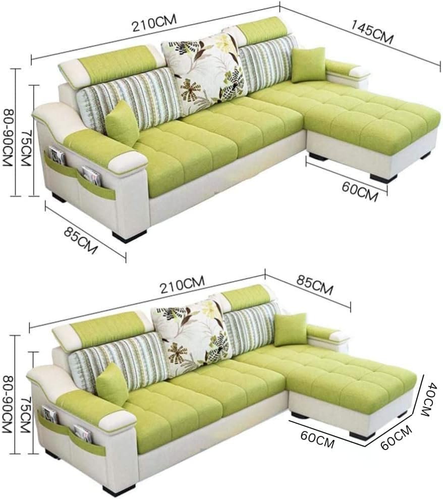 Karnak L-Shape 3 Seater Sofa Linen Tufted Fabric, Solid Wood Living Room Sofa Home Furniture Soft Foam Sofa Color (Light Green)