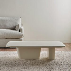 • SMOOTH PLASTER FINISH – Designed with a sleek plaster coating, this coffee table combines style with functionality. The easy-clean surface keeps your table looking fresh and elegant with minimal effort. طاولة سهلة التنظيف للحفاظ على مظهرها الراقي.