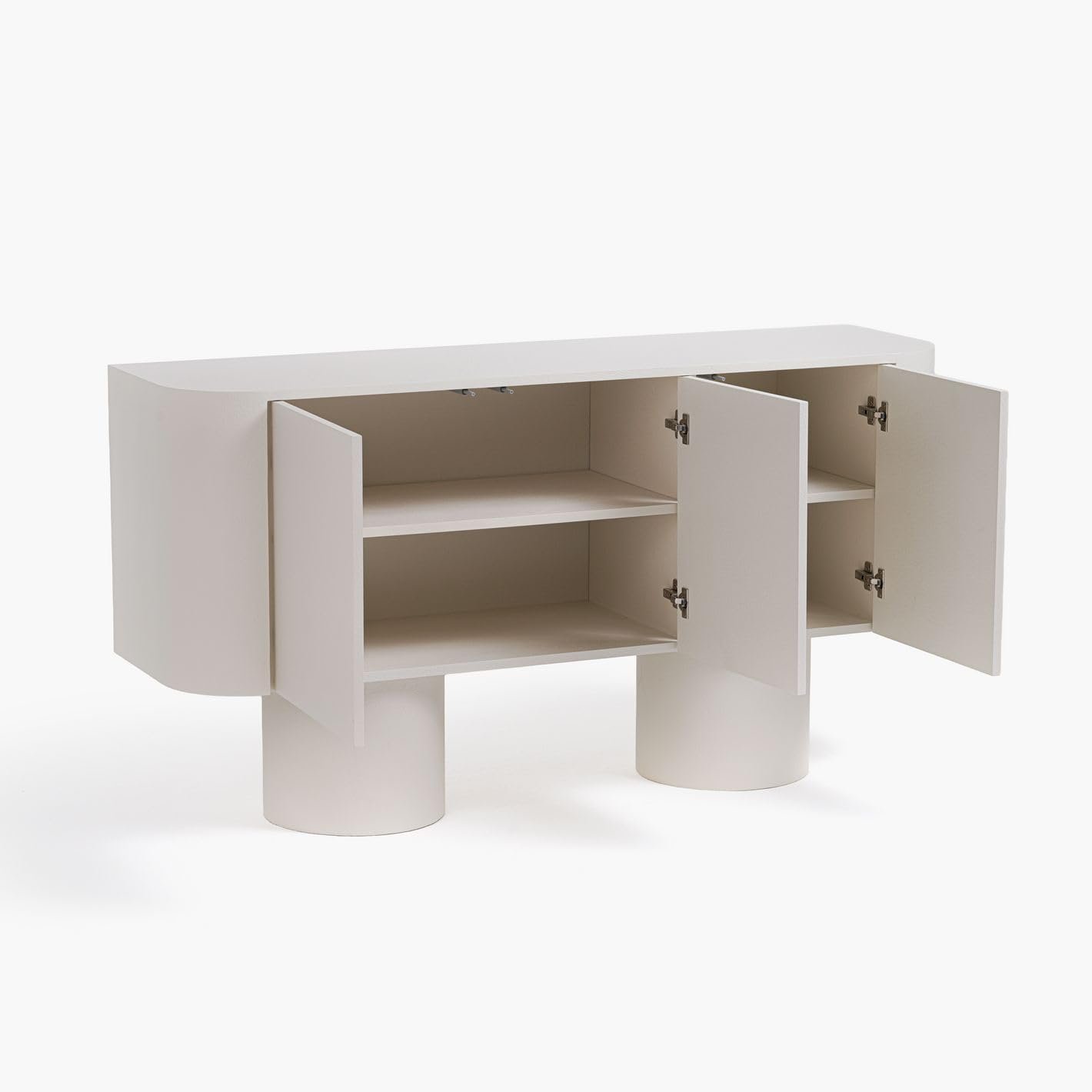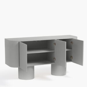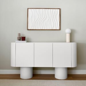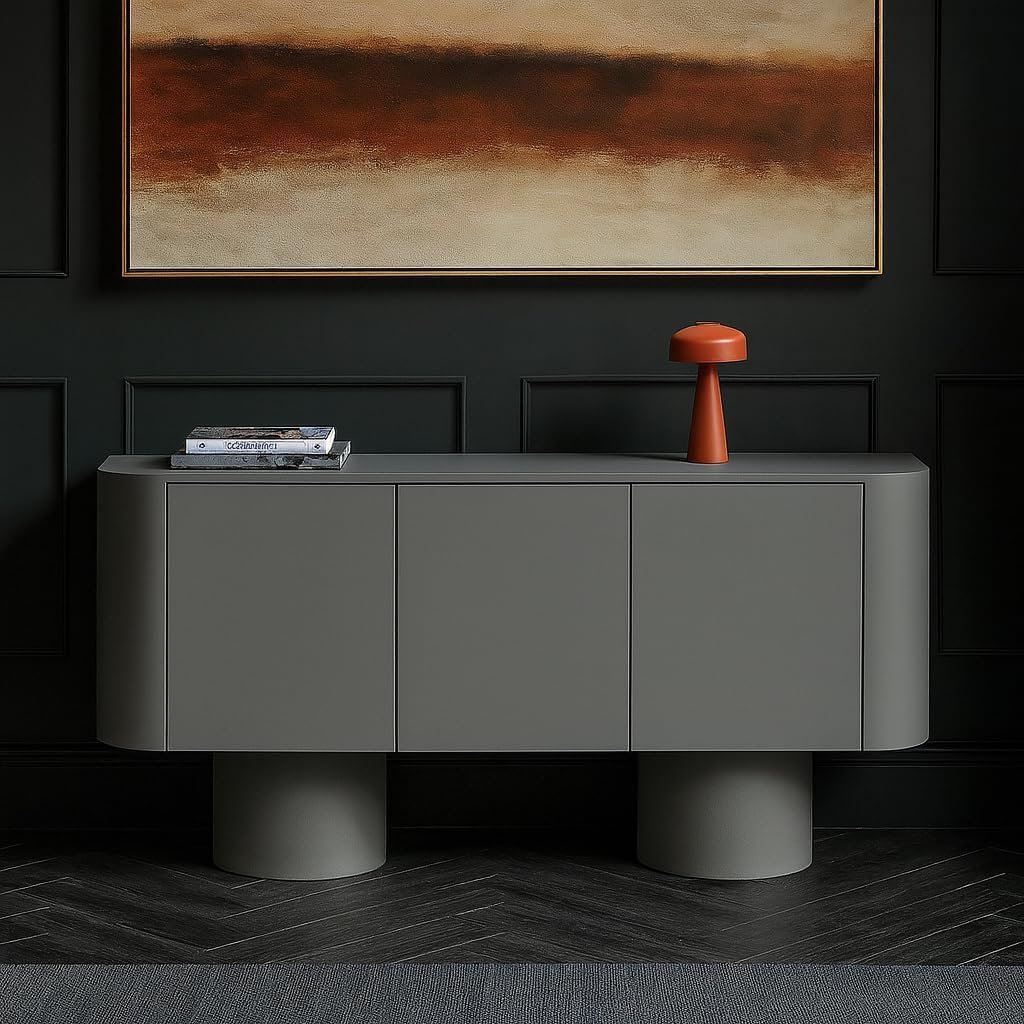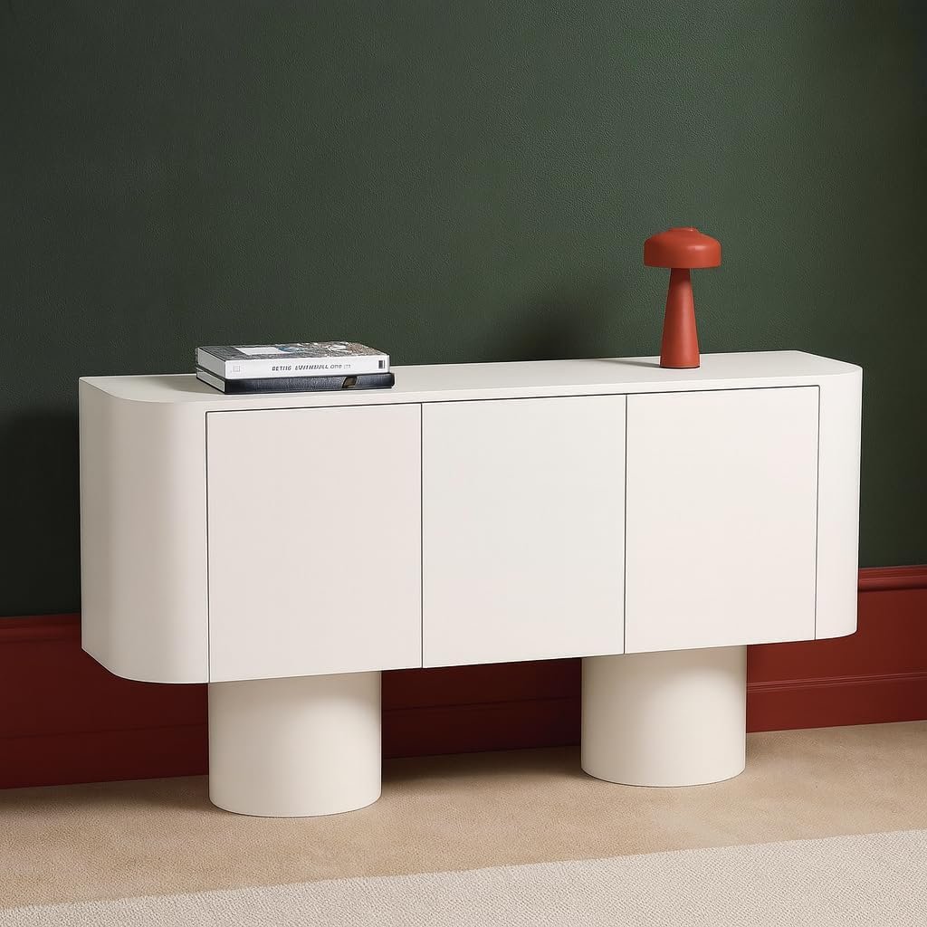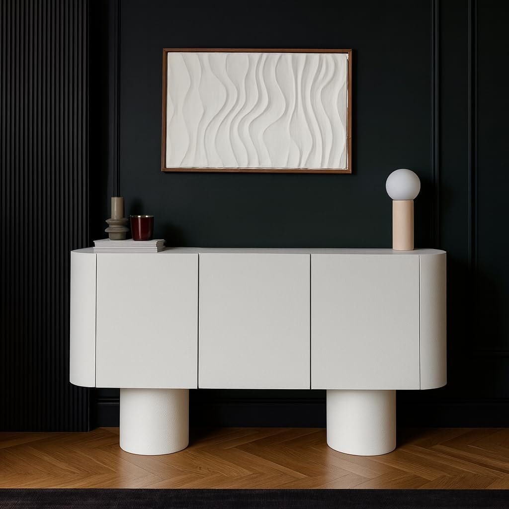 - MODERN DESIGN WITH TIMELESS APPEAL – Smooth rounded edges, plaster finish, and cylindrical legs create a minimalist silhouette. This Karnak sideboard enhances dining rooms, living spaces, or entryways, bringing elegance and balance to any décor style while reflecting UAE’s modern furniture trends.