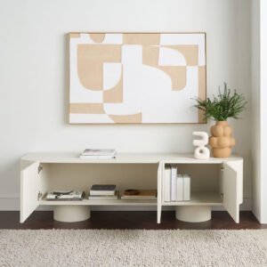 • ELEGANT MODERN DESIGN – The Karnak Meadow TV Unit combines soft curves with sturdy cylindrical legs, making it a perfect modern tv stand for UAE homes seeking balance, serenity, and elegance in their living spaces.
