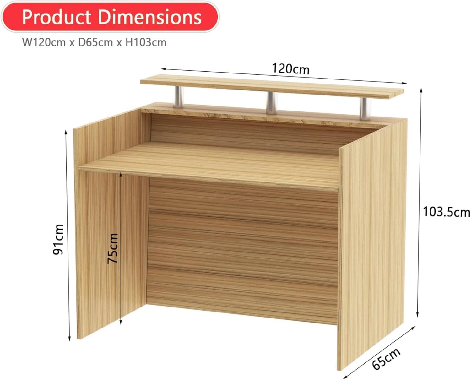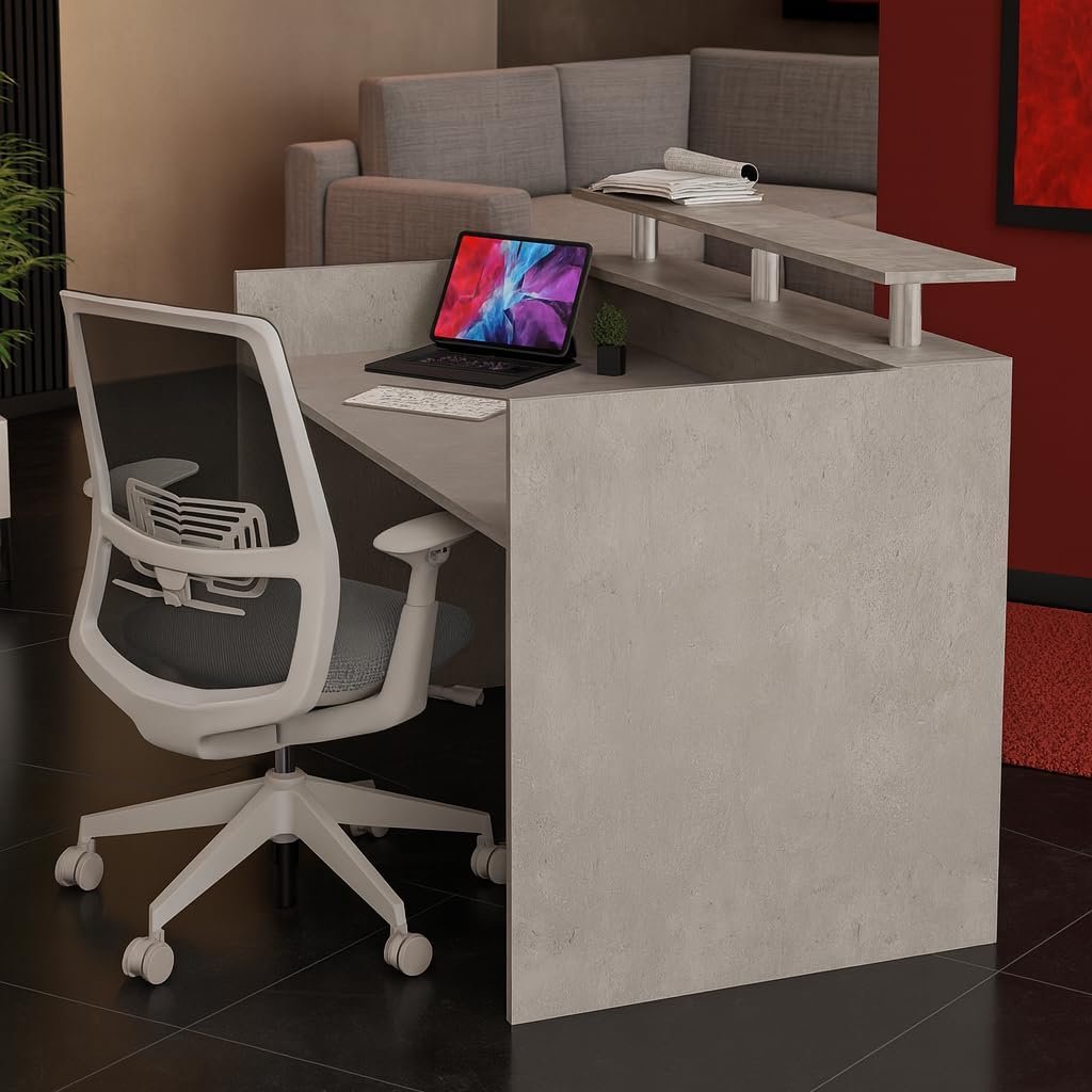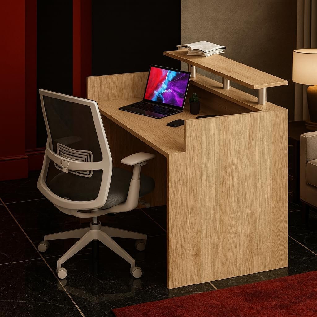 • STURDY BUILD & PREMIUM MATERIALS – Constructed with durable MDF and metal accents, this front desk counter ensures long-term reliability and a polished appearance for daily use in UAE offices.