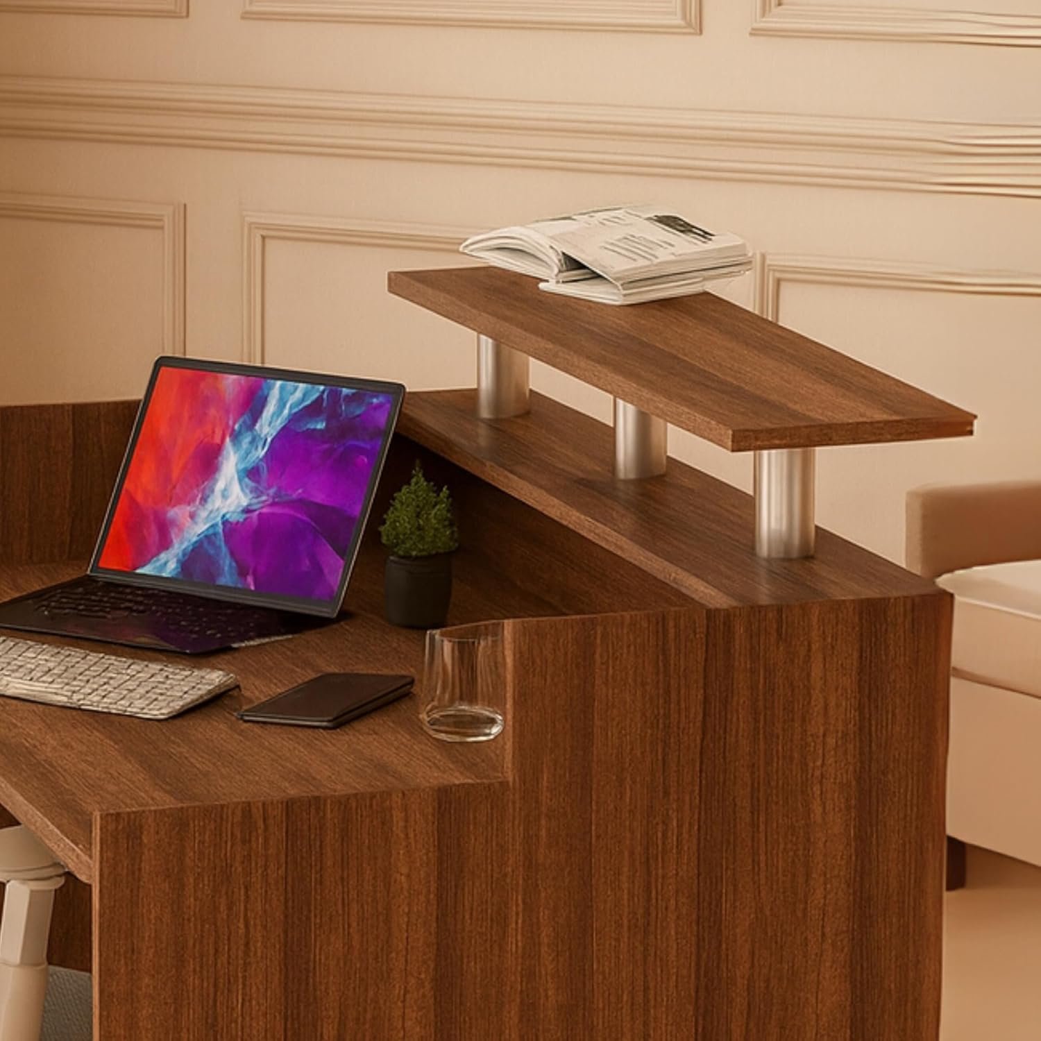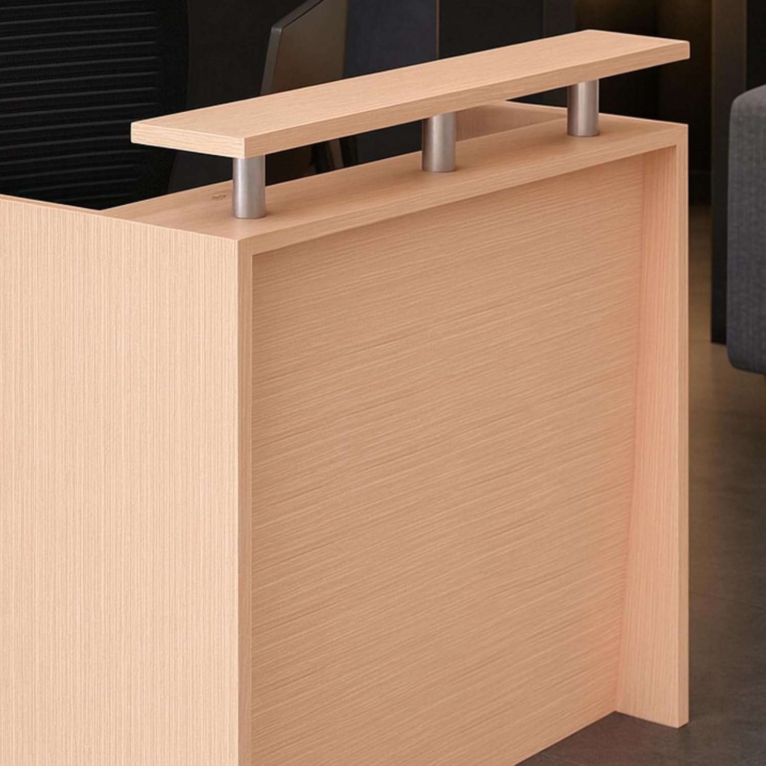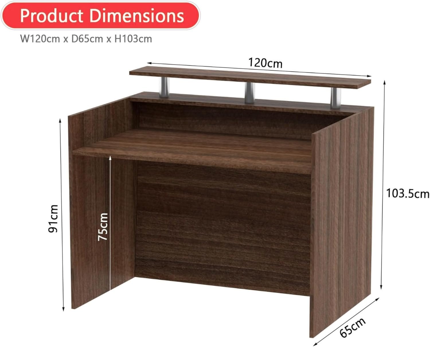 • STURDY BUILD & PREMIUM MATERIALS – Constructed with durable MDF and metal accents, this front desk counter ensures long-term reliability and a polished appearance for daily use in UAE offices.