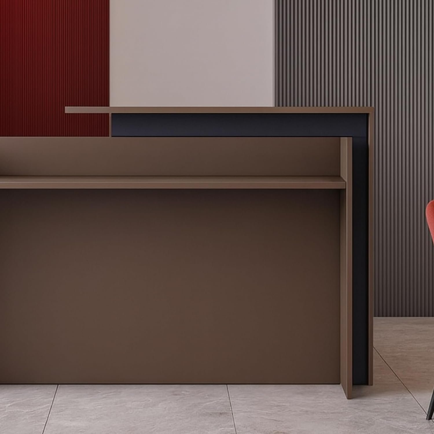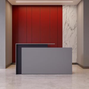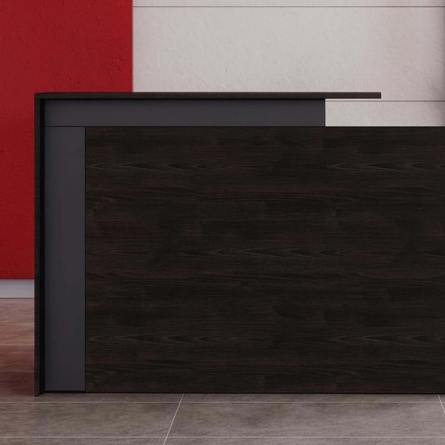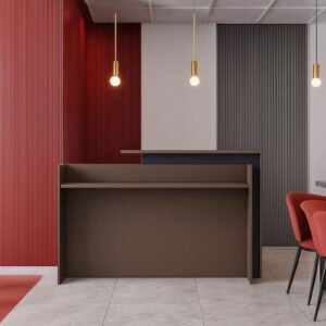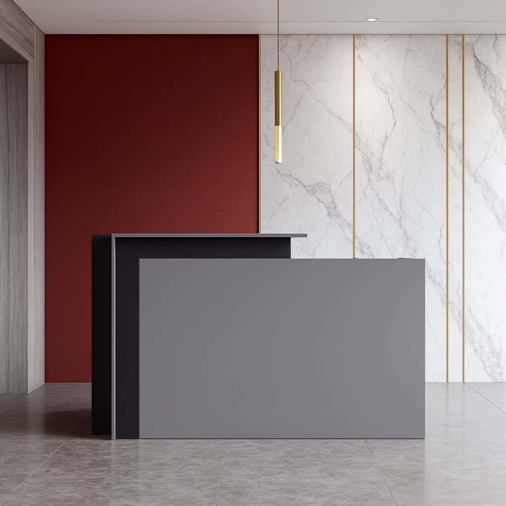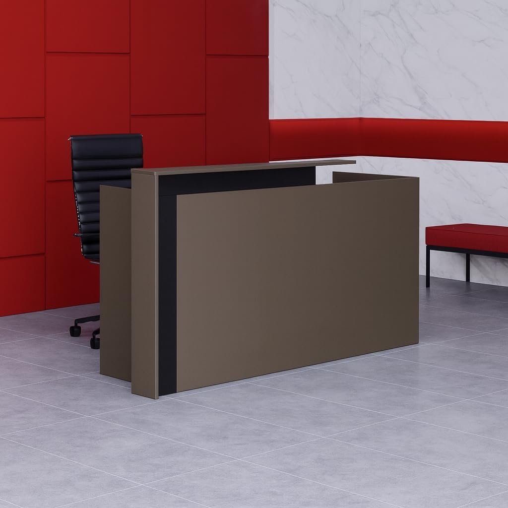 • MODERN DESIGN TO IMPRESS VISITORS – Make a strong first impression with this elegant modern reception desk. The sleek walnut finish complements corporate lobbies, clinics, or salons while enhancing the overall professional look.