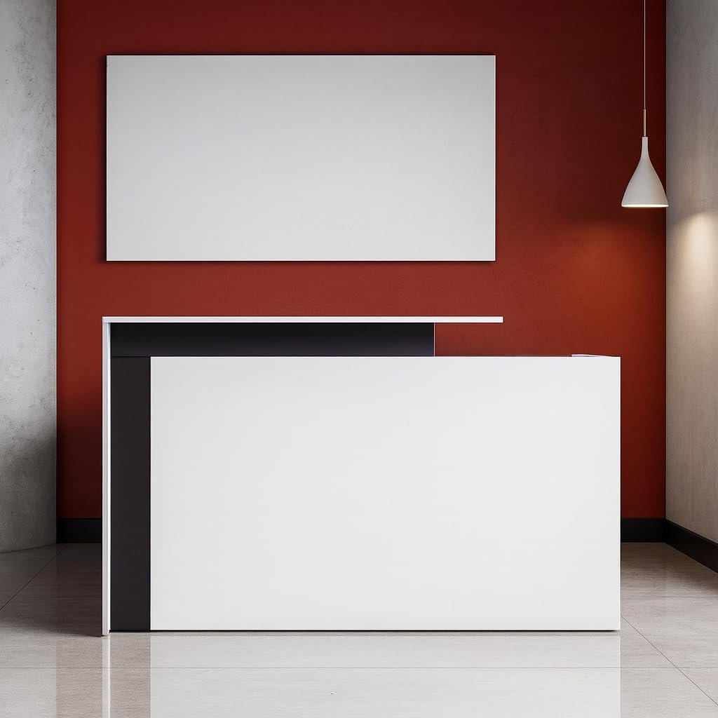 • BUILT TO LAST IN BUSY ENVIRONMENTS – Constructed from premium melamine wood and core panels, this durable reception table withstands daily use in high-traffic locations like clinics, spas, and commercial buildings.