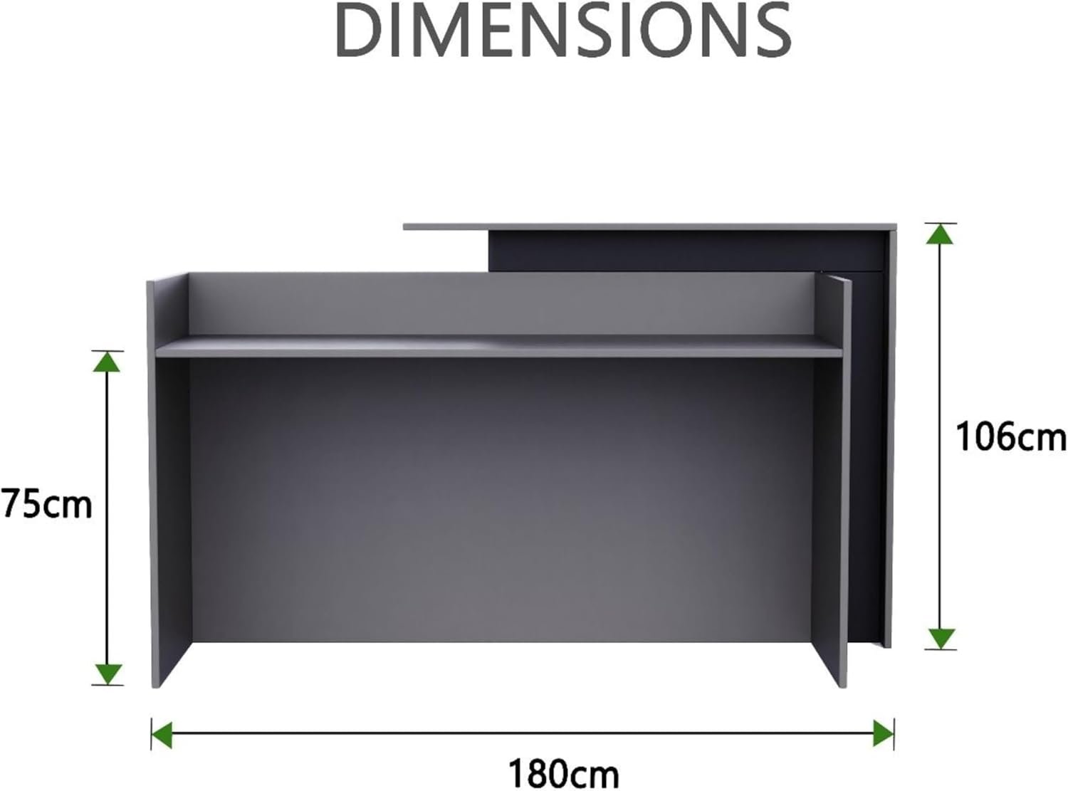 • AMPLE STORAGE SPACE INCLUDED – Includes a check writing ledge, under-desk storage cubby, and a side cabinet for files, phones, and documents. This office reception counter helps reduce clutter and maintain workflow.