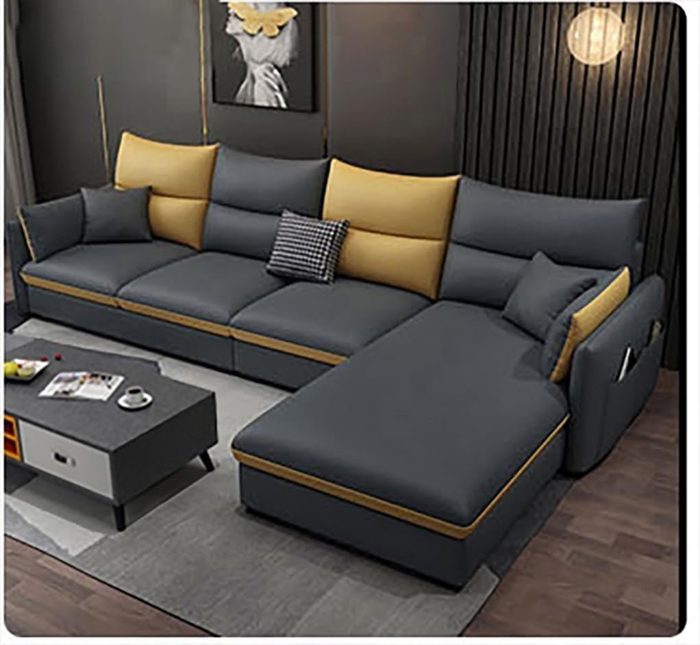 Upgrade your home with the Karnak Modern Sofa, a right-arm L-shaped sectional loveseat that combines mid-century style, modern comfort, and practical design. Upholstered in premium light grey leather, this sofa is perfect for living rooms, bedrooms, apartments, or small lounges, offering a versatile solution for seating and relaxation.The compact loveseat size with corner sectional design maximizes space while providing cozy seating for couples, families, or guests. With its plush cushions, ergonomic back support, and durable frame, the sofa ensures both comfort and long-lasting durability. The mid-century inspired silhouette with accent armrest and clean lines makes it a stylish addition to any décor.Ideal for living rooms, accent seating, or multifunctional bedroom furniture, the Karnak Leather Sectional Sofa is designed for those who value space-saving furniture with modern elegance.