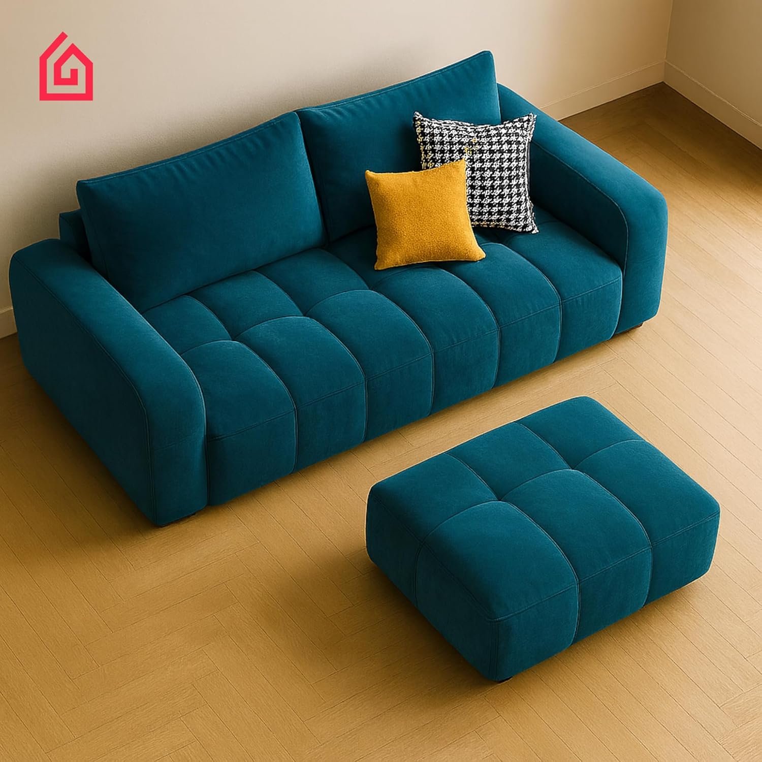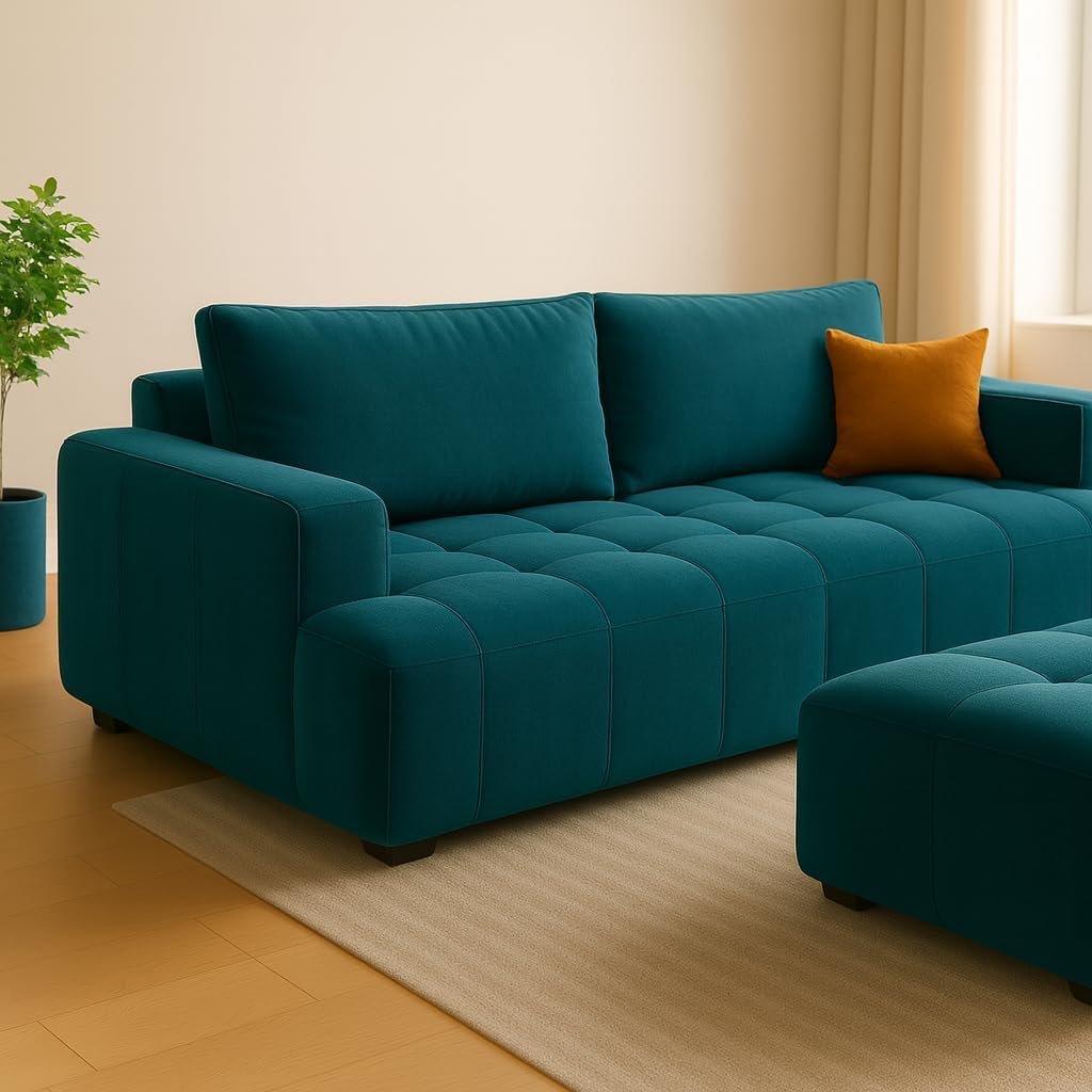 Karnak Modular Hokku Sofa | 1-Seater Sectional Sofa | Lounge Upholstery Sofa Corner | Minimalist Cloud Sofa Design | Modern Living Room Furniture (Aqua Green)