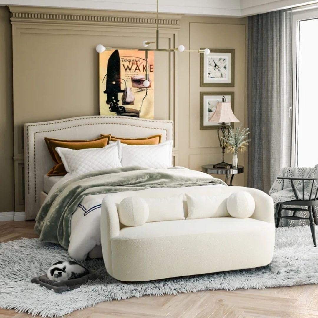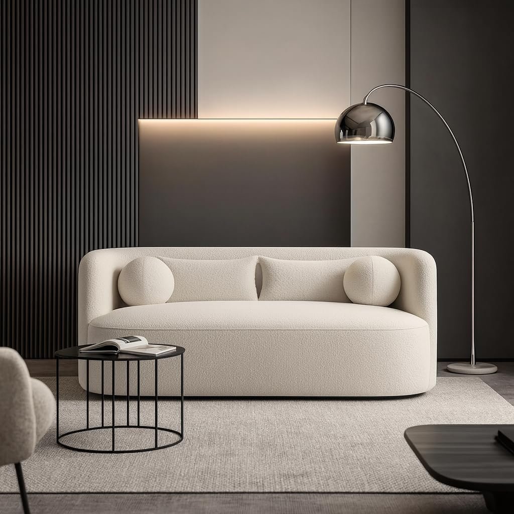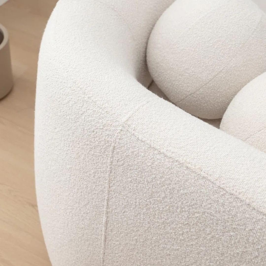 • Elegant Bouclé Fabric Upholstery – Soft, textured boucle covering with a cozy tactile feel for luxury and style.