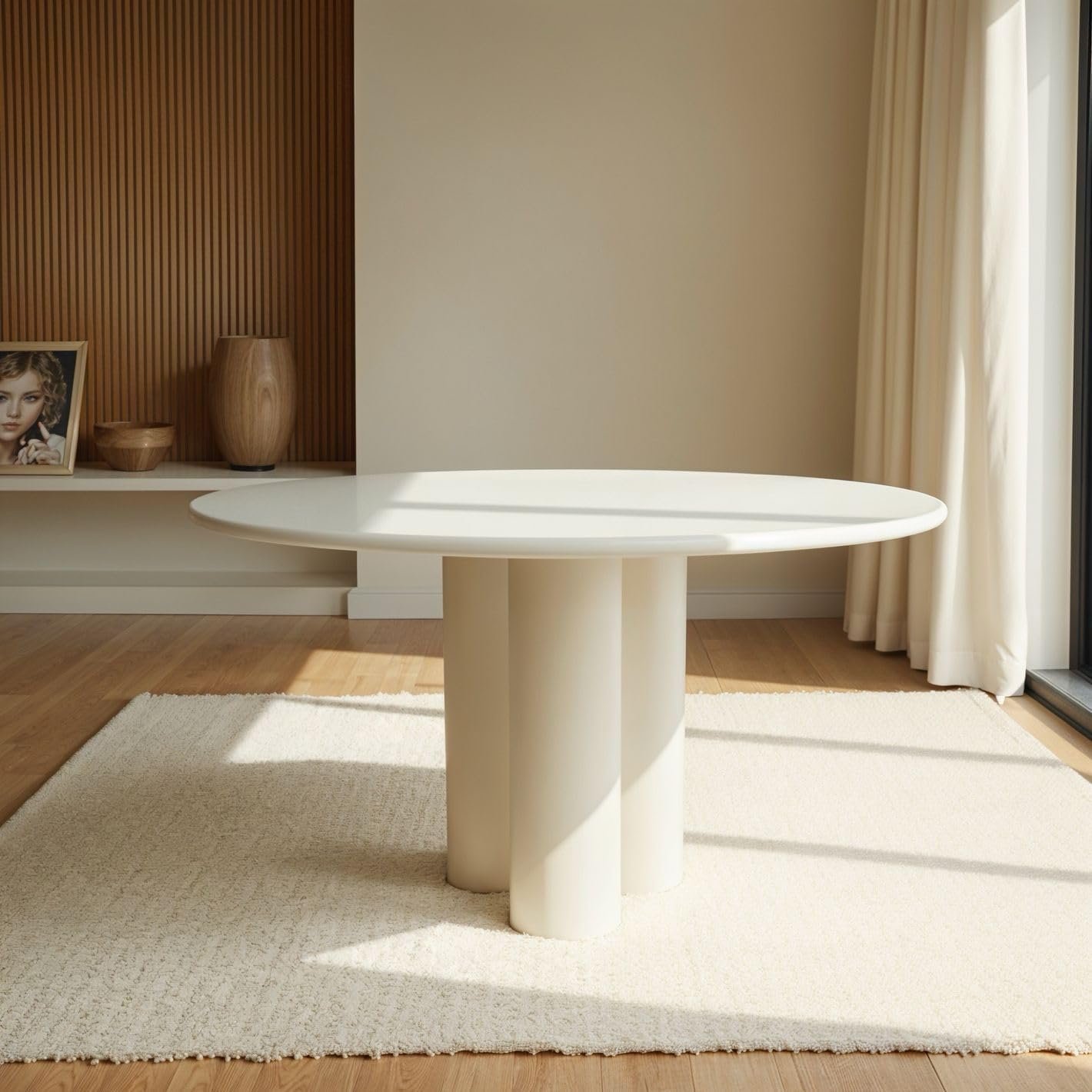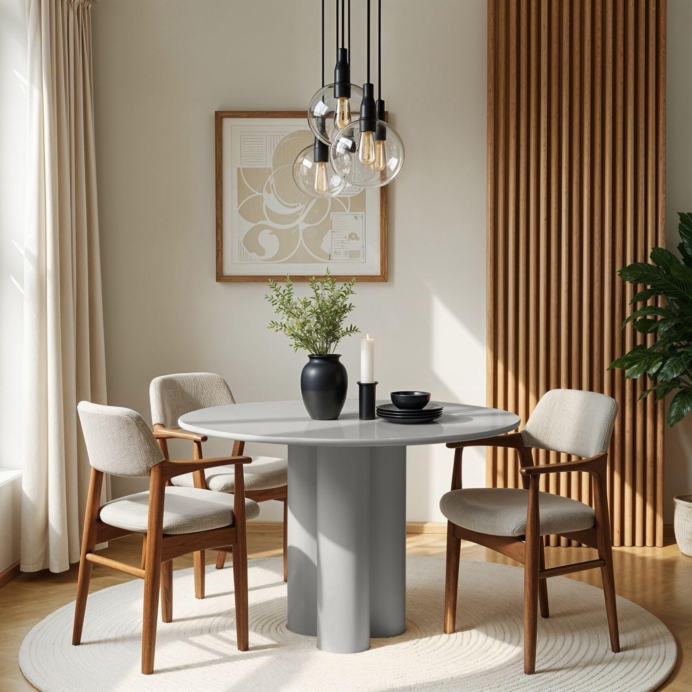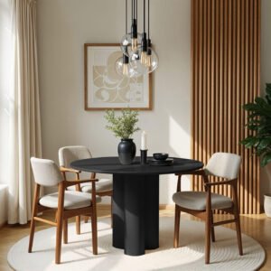 - SPACE-SAVING ROUND SIZE – Measuring 120 cm wide, it comfortably seats 4, making it perfect for compact apartments or villas in Dubai, Abu Dhabi, and Sharjah.
