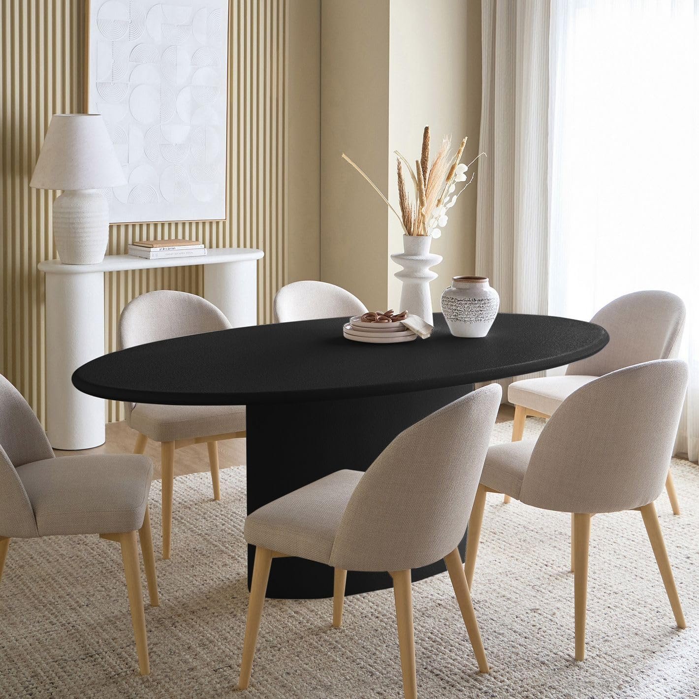 - STYLISH OVAL DESIGN – The Karnak Pine dining table features an elegant oval shape with a textured plaster finish, adding sophistication to your dining room. طاولة طعام بيضاوية.