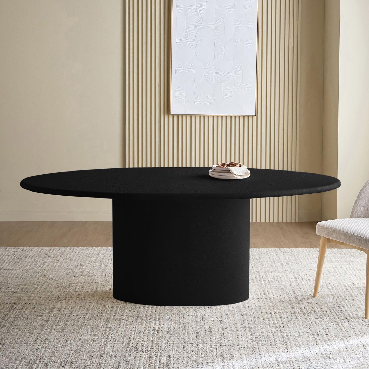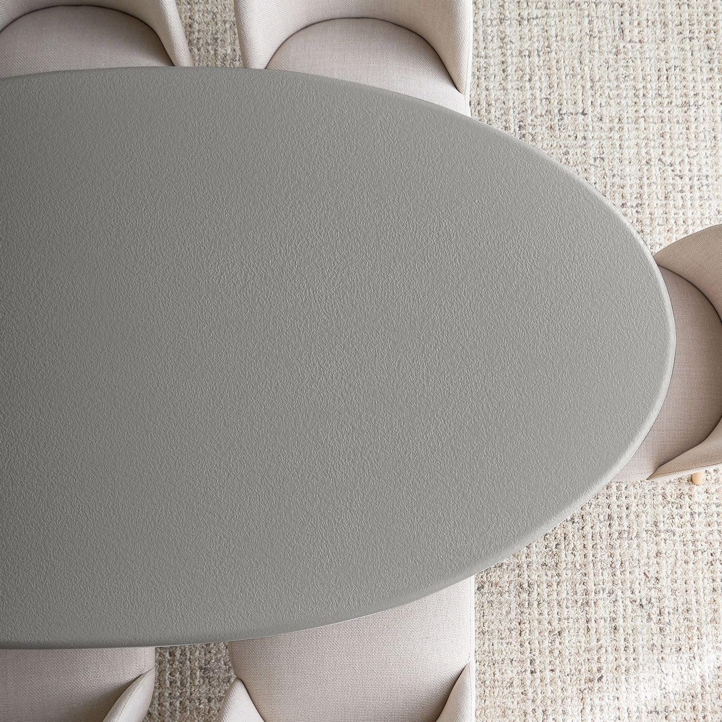 Karnak Pine 6-Seater Oval Dining Table with Pedestal Base, Textured MDF Top, Modern Luxe Style (Grey)