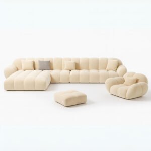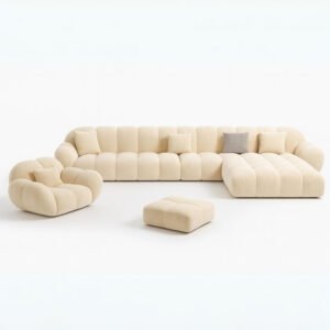 Transform your space with this modular L-shaped sofa, designed for maximum comfort and UAE-style living. Upholstered in plush fleece, this corner sectional sofa brings a cloud-like feel to every seat. Whether placed in a majlis, living room, or office, its off-white tone adds elegance without overpowering the decor. The overstuffed build offers deep support, making it ideal for lounging, hosting, or even a quick nap. Built for durability and stylish comfort, this piece adapts easily to both modern and traditional interiors.
