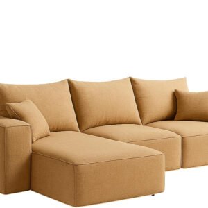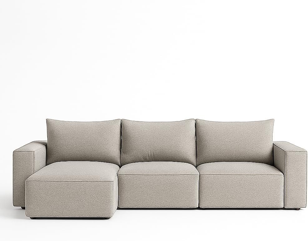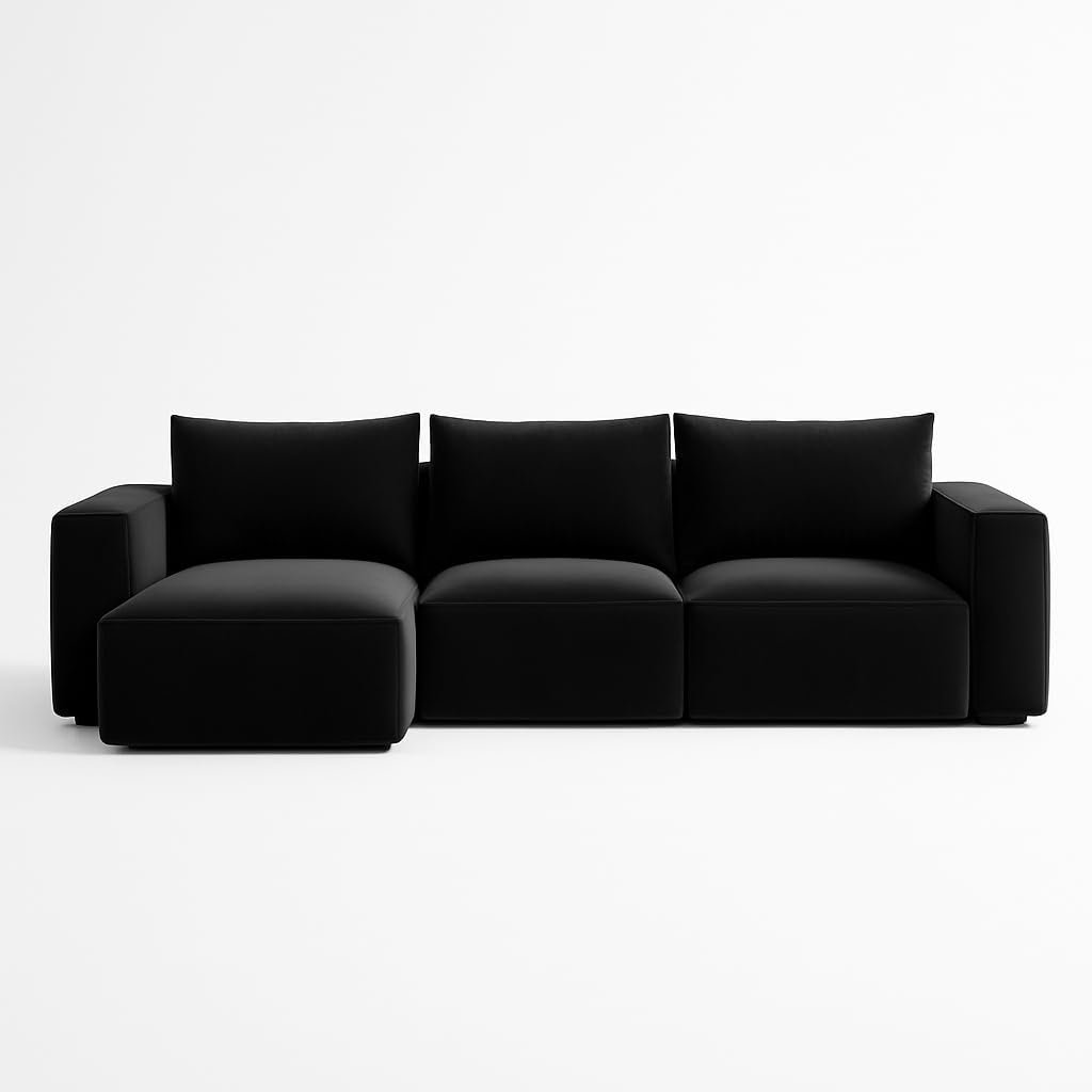 - Style: Modern L-shaped with padded armrests