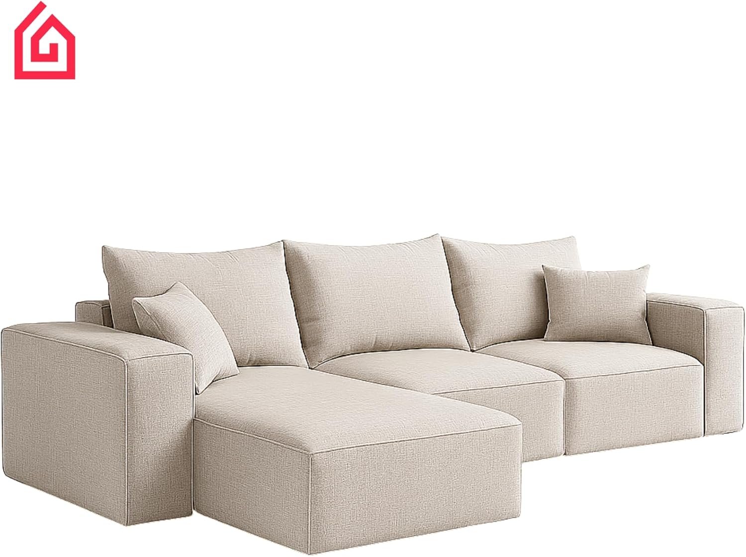 Karnak 3 Seater Sectional Sofa with Cushions | L-Shaped Sofa | Comfortable Living Room Furniture | Modern Balcony Sofa with Pillows