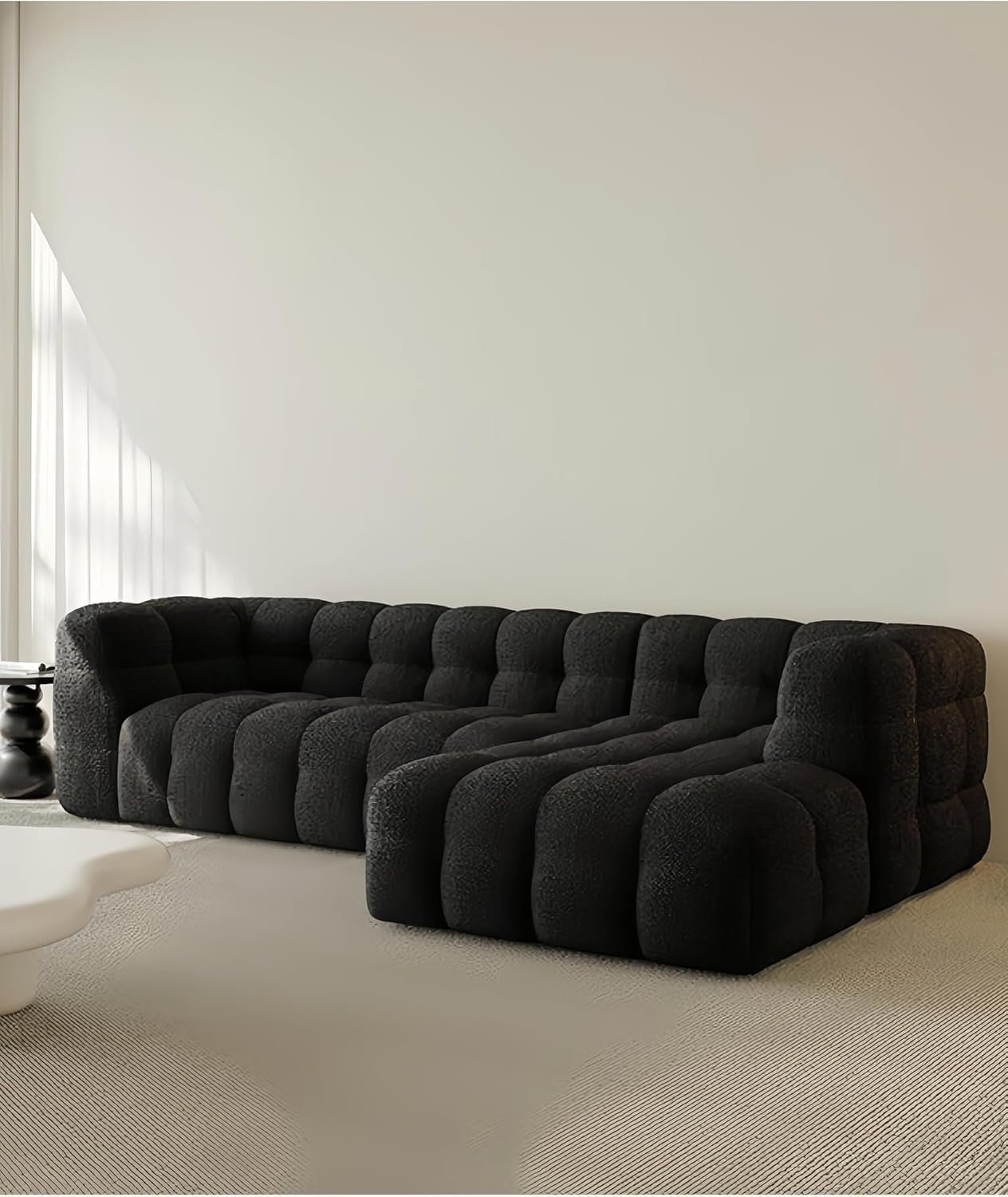 Karnak Rayah Fleece Fabric Overstuffed Multifunction L-shaped Sofa Chair Set – BLACK 300cm