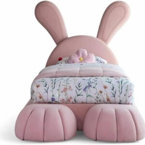 Bring imagination to life with the Karnak Seoul Rabbit Shaped Bunny Bed, a whimsical blend of comfort and charm. Designed with a unique bunny-inspired silhouette, this bed features an adorable curved headboard with oversized rabbit ears and plush paw-shaped footrests, making it a delightful centerpiece for any children’s or playful adult bedroom. Crafted with high-quality materials, the frame is upholstered in luxuriously soft velvet fabric, offering a cozy and inviting feel. Its sturdy wooden structure ensures long-lasting durability and reliable support, while the padded design enhances both safety and style. Perfect for kids, teens, or anyone young at heart, the bed combines function with fantasy, turning everyday rest into a magical experience. Whether you’re designing a dreamy bedroom or looking for a standout furniture piece, the Karnak Bunny Bed delivers on both aesthetics and comfort — without compromising on quality.