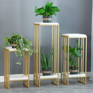 Kustom Deco Modern Plant Stand, 2-Tier White Shelves, Gold Metal Frame, Decorative Display Rack ((D30 X W60 X H30) cm)
