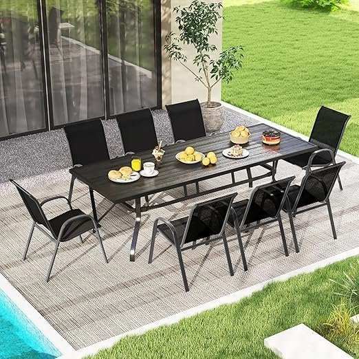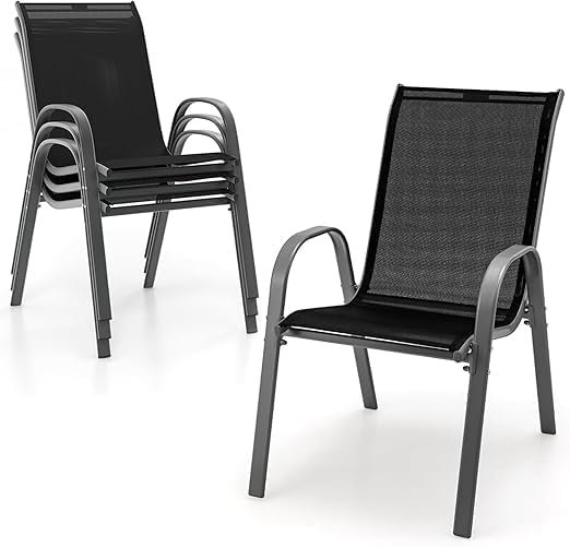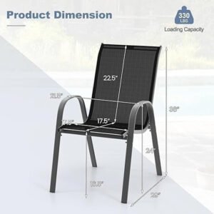 Kustom Deco Patio Chairs, Stackable Patio Chairs with Armrests and Breathable Seat Fabric, Outdoor Dining Chair for Patio, Pool Side, Backyard | steel frame with powder coating – Black.