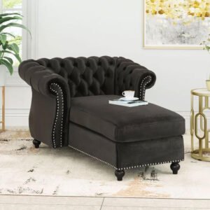 Kustom Deco Tufted Rolled Arms Chaise Lounge – Elegant Upholstered Chaise Lounge Chair, Custom Design for Living or Bedroom