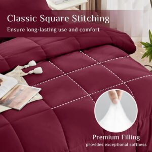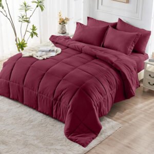 KUSTOMDECO Down Alternative 4Pcs Comforter Set Dark Red – Ultra Soft Microfiber Duvet with 250GSM Filling – Queen Size 220×240 cm – Lightweight, Breathable & Hypoallergenic Bedding for All Seasons