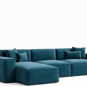 KUSTOMDECO Luxury Carol Corner Sofa 3 Seater L-Shape Velvet Sofa | Modern Arabic Furniture, Fabric Cushion Back | Wood & Metal Frame, Elegant Cotton Upholstery | Living room furniture (Blue)