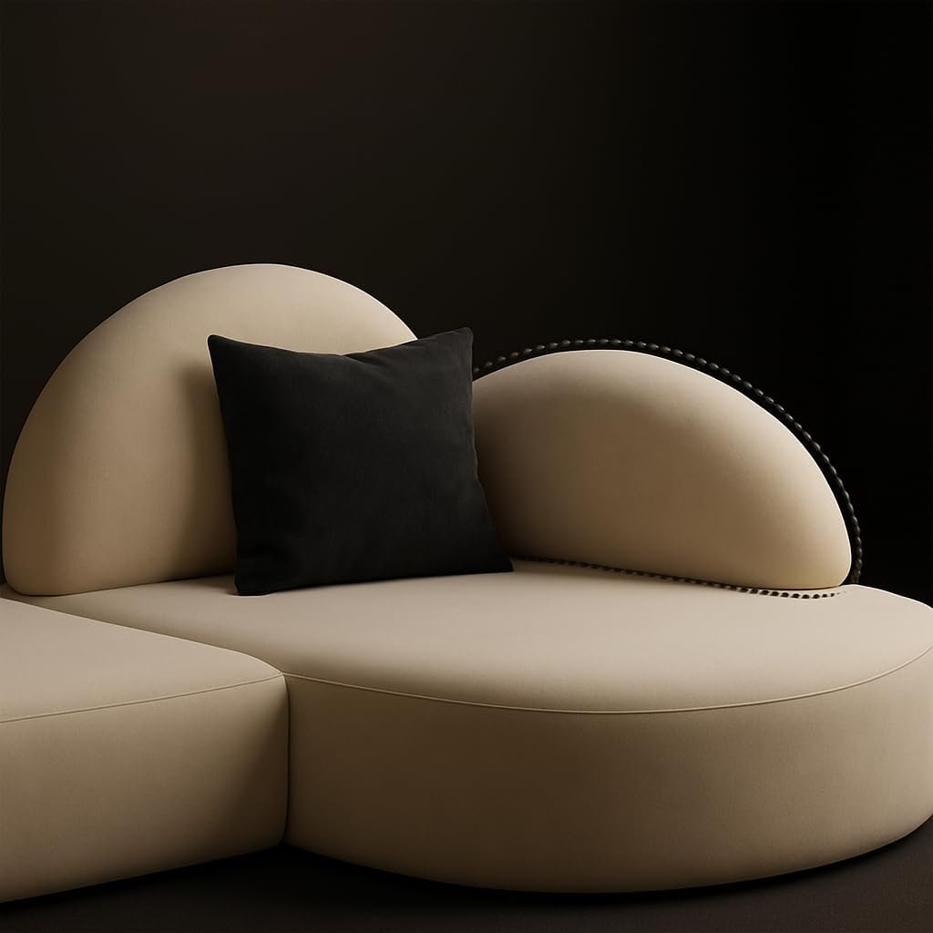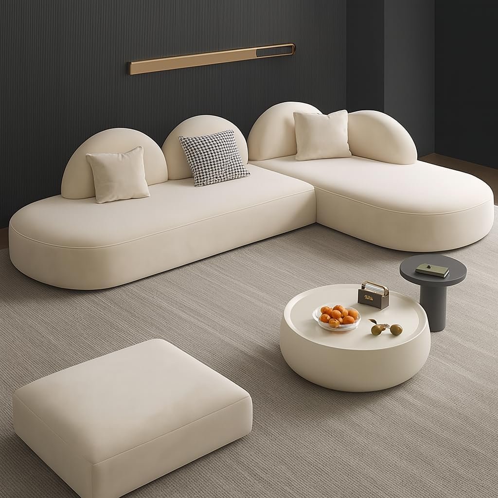 KUSTOMDECO Luxury Velvet Sectional Sofa Set | Beige Overstuffed L-Shaped Sofa Set Modular Cloud-Shaped Corner Sofa with Footstool Living Room Furniture (L Shape + Footstool)