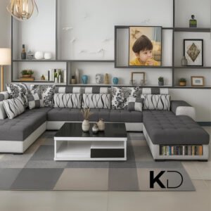 • ✔ STYLISH MODERN AESTHETIC – The sleek upholstery and contemporary U-shaped design enhance any interior, adding a luxurious yet welcoming ambiance to your living room.