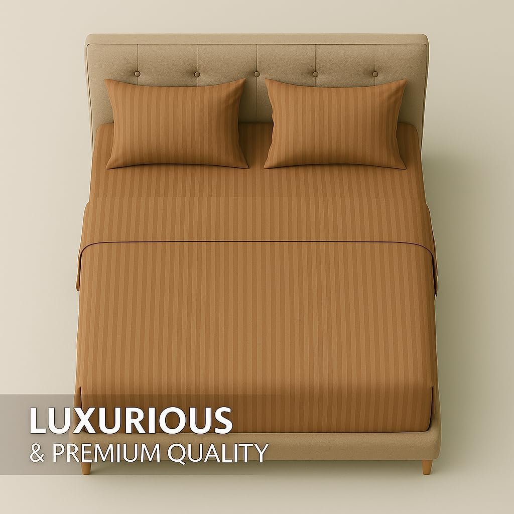 KUSTOMDECO Outlet Striped Microfiber Fitted Sheet Set – Queen 150×200 cm – Cream Color – 1 Fitted Sheet & 2 Pillowcases (50×75 cm) – Deep Pocket, Soft, Durable, Wrinkle-Resistant Bedding Set