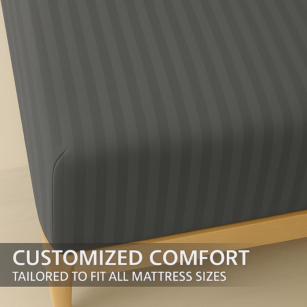 ✨ Elevate your sleep with a touch of elegance and exceptional comfort—choose KUSTOMDECO Striped Microfiber Fitted Sheet Sets for a restful night, every night.