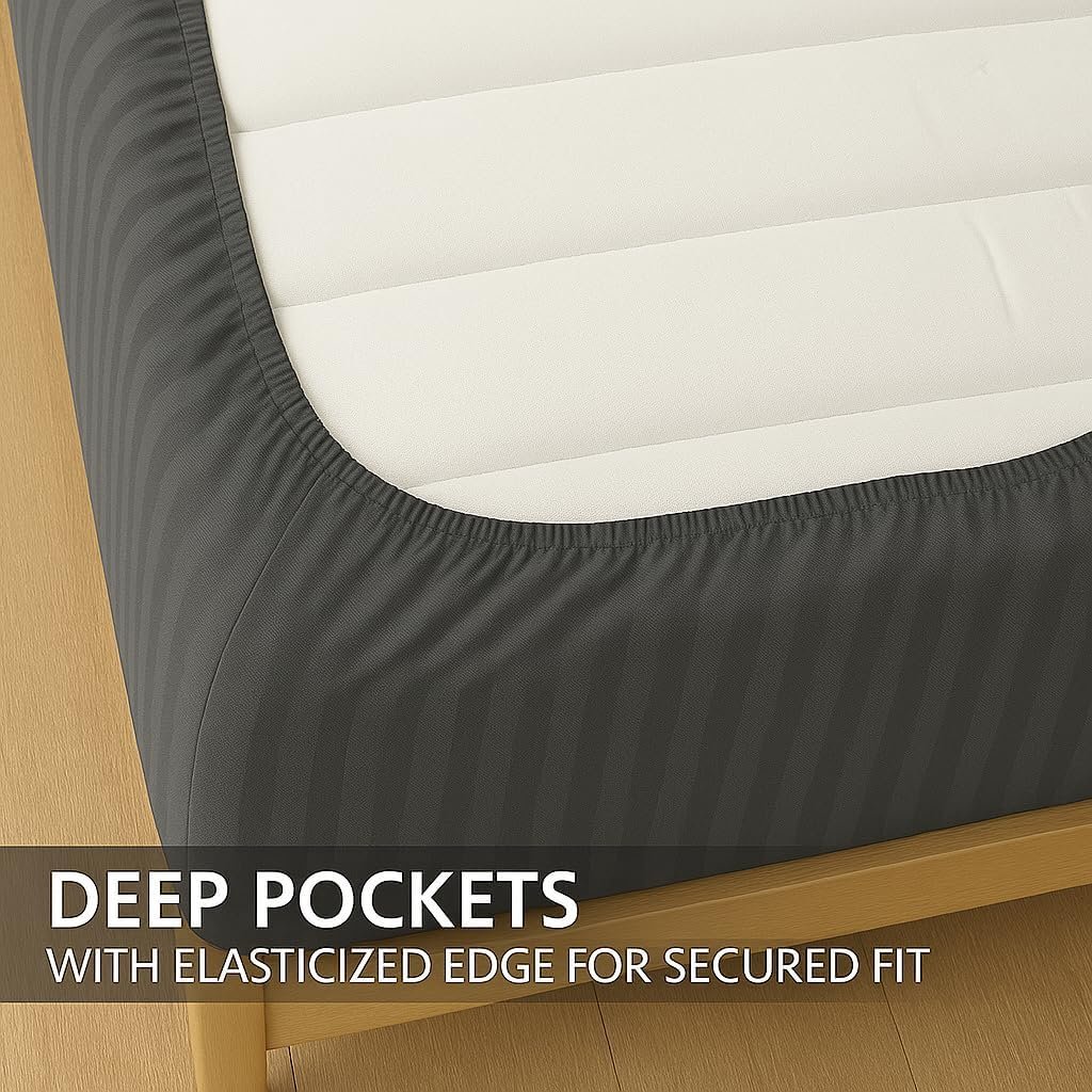 ✨ Elevate your sleep with a touch of elegance and exceptional comfort—choose KUSTOMDECO Striped Microfiber Fitted Sheet Sets for a restful night, every night.