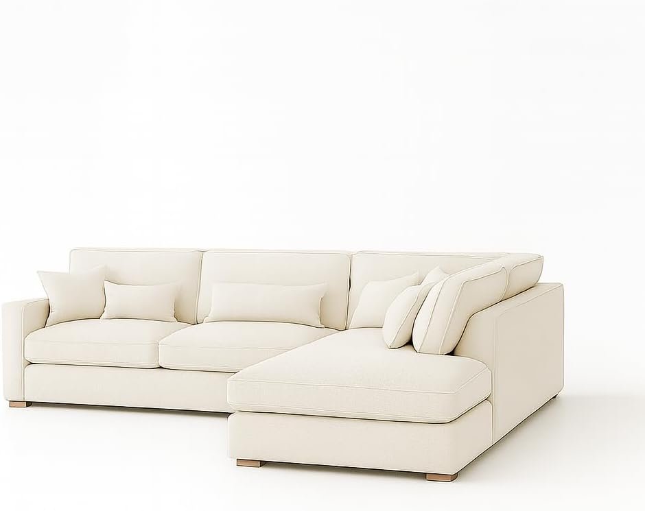 KUSTOMDECO Plain Corner Sofa L Shape | Linen Sectional Sofa for Living Room, Modern Upholstered Couch | Space-Saving Design | Left or Right Facing (Beige)
