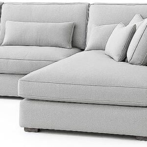 KUSTOMDECO Plain Corner Sofa L Shape | Linen Sectional Sofa for Living Room, Modern Upholstered Couch | Space-Saving Design | Left or Right Facing (Cream)