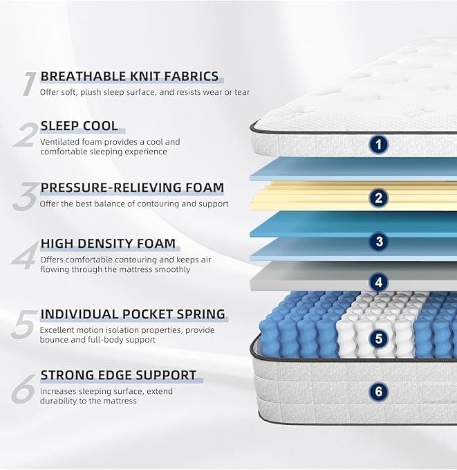 • Combines individual pocket springs and high-density foam for balanced support.