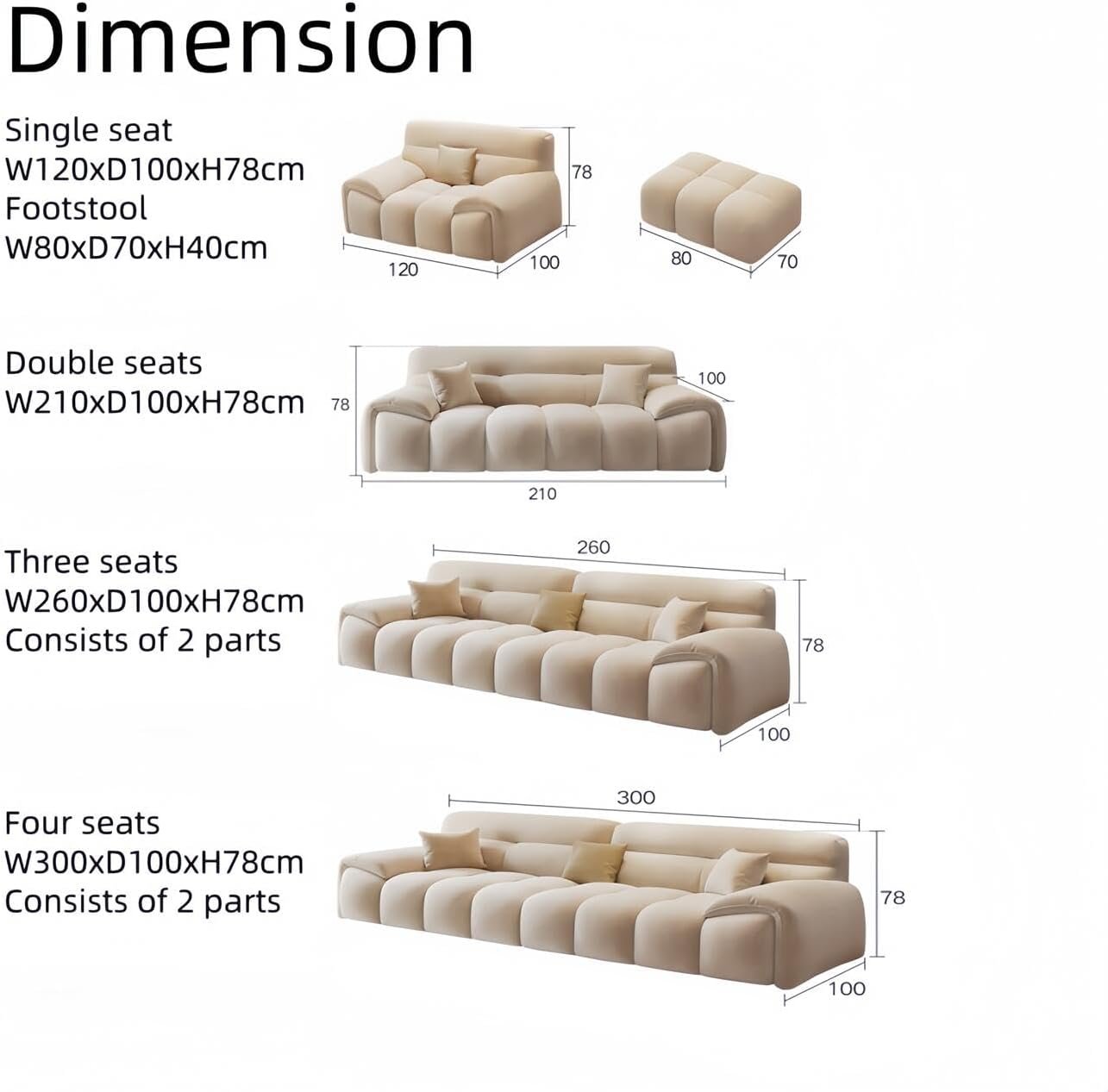 Luxury Luxe Beige Fabric Cloud Sofa Set – Modular Living Room Couch with Footstool, 1/2/3/4 Seater, Plush Ergonomic Comfort, Eco-Friendly (Double Seats 210 cm)