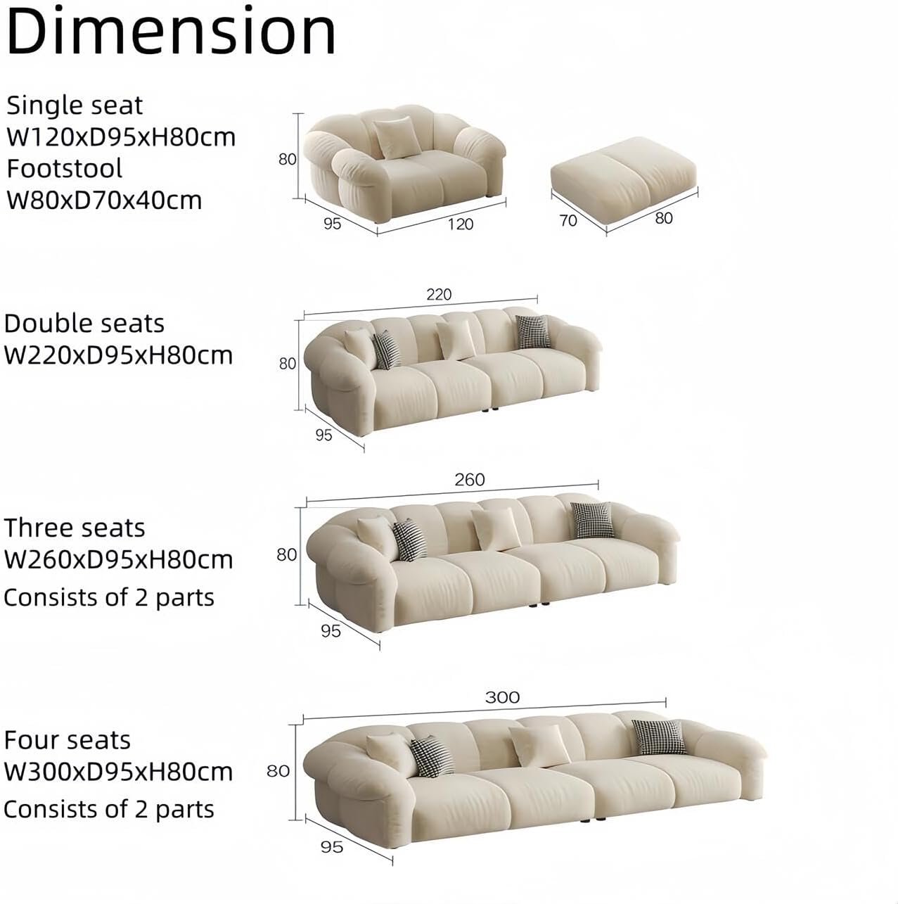 Luxury Luxe Cloud Shaped Modular Sofa Set: Light Luxury Fabric Beige Sectional Sofa w/Footstool, 1-4 Seaters for Living Room – Family Size Comfort (Double Seater: 220 cm)