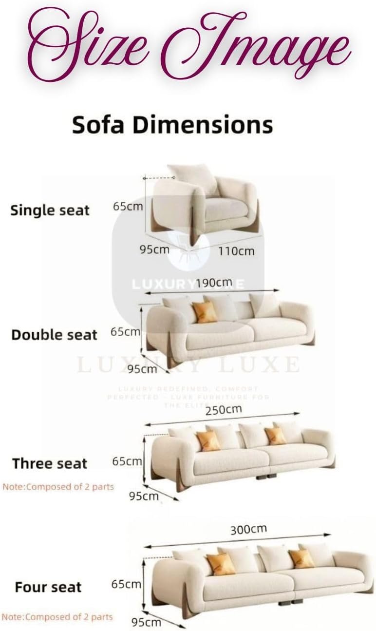 - ✦ Modular Sofa Set Configurations – Choose from single (110cm), double (190cm), 3-seat (250cm), or 4-seat (300cm) designs (two-part assembly) to fit living rooms, offices, or apartments.