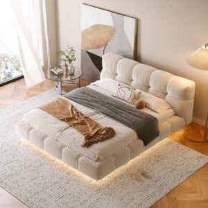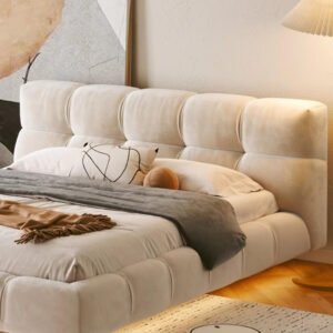 Transform your bedroom into a sanctuary of modern elegance with this luxurious Italian solid wood bed frame. The sophisticated beige upholstery and clean, minimalist design create a floating effect enhanced by subtle LED underlighting. Featuring premium tufted detailing on both the headboard and base, this bed frame offers exceptional comfort and visual appeal. Available in multiple sizes (140x200cm, 160x200cm, 180x200cm, 200x200cm) to suit various room dimensions, the frame showcases meticulous craftsmanship in every detail. The robust solid wood construction ensures outstanding stability and durability, while the generous padding adds a touch of opulence. Perfect for contemporary interiors, this bed frame comes complete with a sleek side table and harmonises beautifully with modern décor elements. The mattress is sold separately, allowing you to customise your sleeping experience. Assembly is straightforward, with all necessary hardware included for setup.