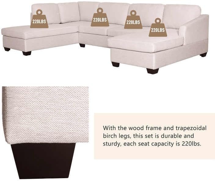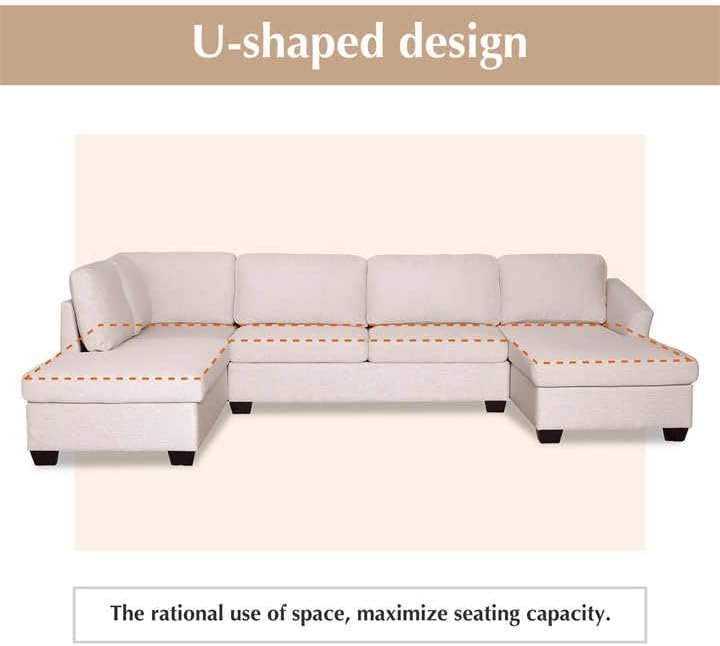 Luxury Luxe Jattebo 5-Seater Modular Sectional Sofa | Beige Fabric Upholstery | Solid Wood Frame | Modern U-Shaped Living Room Sofa