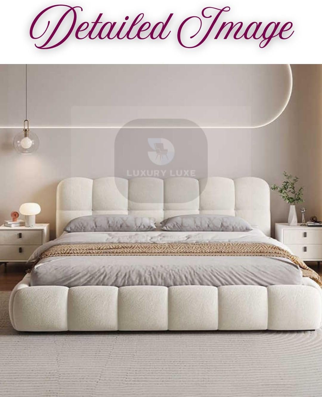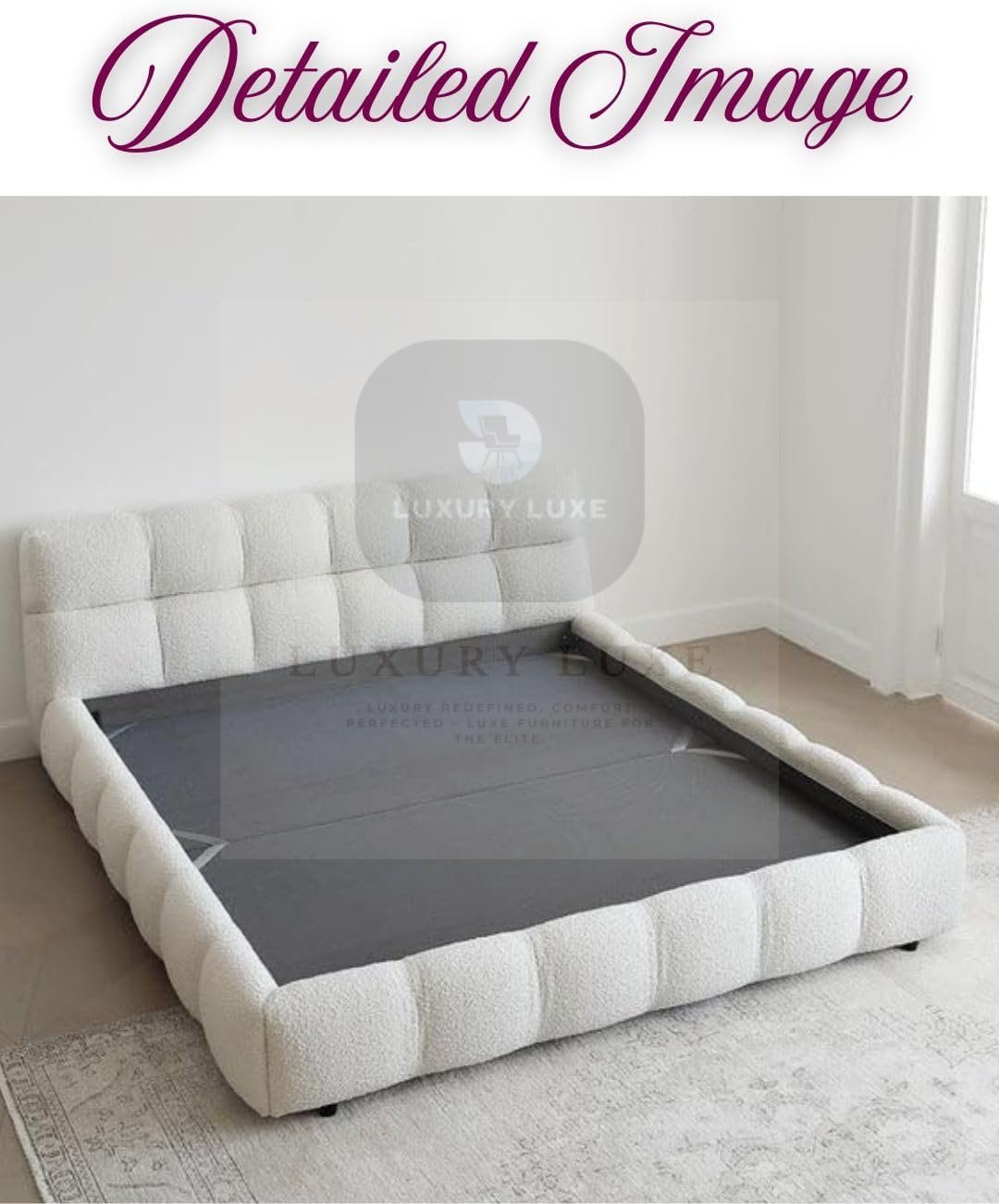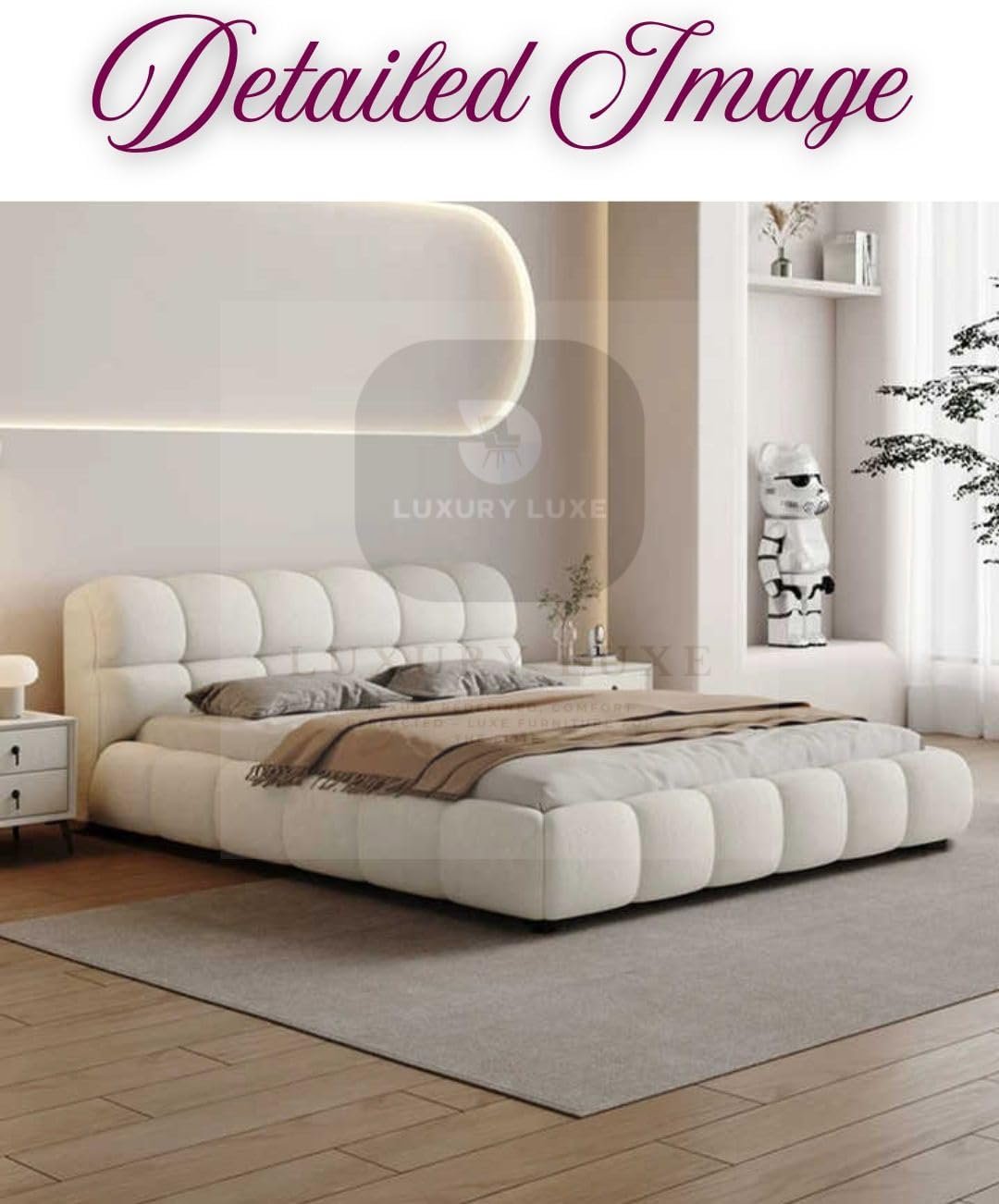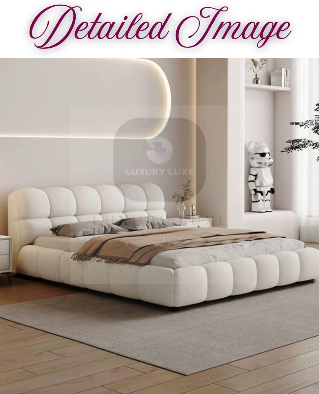 Luxury Luxe Puff Bed – Modern Cloud-Like Comfort for Your Bedroom Transform your bedroom into a luxurious retreat with the Luxury Luxe Puff Bed, designed to blend modern elegance with hotel-grade comfort. Crafted for those who crave style and relaxation, this bed redefines sleep with its plush design and premium craftsmanship. Available in Queen, King, and Super King sizes to suit every space and preference. ✨ Key Features & Benefits 🛏️ Plush Fleece Fabric & High-Density Sponge Sink into cloud-like softness with ultra-soft fleece upholstery and supportive high-density sponge cushioning, engineered for all-night comfort. 🌿 Solid Wood Frame & Durable Design Built with a sturdy solid wood frame, this bed ensures lasting stability and durability, while the sleek Soft White finish adds a modern minimalist touch to any bedroom. 🏨 Hotel-Grade Luxury at Home Experience five-star comfort with a bed designed to rival high-end hotel suites—perfect for creating a serene, indulgent sleep environment. 🎨 Modern Aesthetic, Versatile Style The clean-lined, Scandinavian-inspired design complements contemporary, rustic, or eclectic decor, making it a timeless addition to your home. 🧼 Easy Maintenance Stain-resistant, easy-to-clean fabric ensures your bed stays pristine, even with daily use. 📦 Multiple Sizes Available Queen Size: Fits mattresses up to 160×200 cm (ideal for cozy bedrooms). King Size: Fits mattresses up to 180×200 cm (perfect for spacious master suites). Super King Size: Fits mattresses up to 200×200 cm (ultimate luxury for large rooms). 📏 Technical Specs Sizes: Queen (160×200 cm), King (180×200 cm), Super King (200×200 cm). Materials: Premium fleece fabric, solid wood frame, high-density sponge. Color: Soft White (neutral elegance). Weight Capacity: 350+ KG (built to last). Mattress Compatibility: Works seamlessly with all mattress types (memory foam, hybrid, spring, or latex). 🎯 Perfect For Homeowners seeking a statement piece for modern bedrooms. Comfort lovers who value ergonomic support and plush softness. Design enthusiasts drawn to Scandinavian minimalism and neutral tones. 🛒 Why Choose Luxury Luxe? ✅ Premium Quality: Rigorous craftsmanship ensures years of comfort. Upgrade your sleep sanctuary today — because you deserve a bed that’s as stylish as it is comfortable!