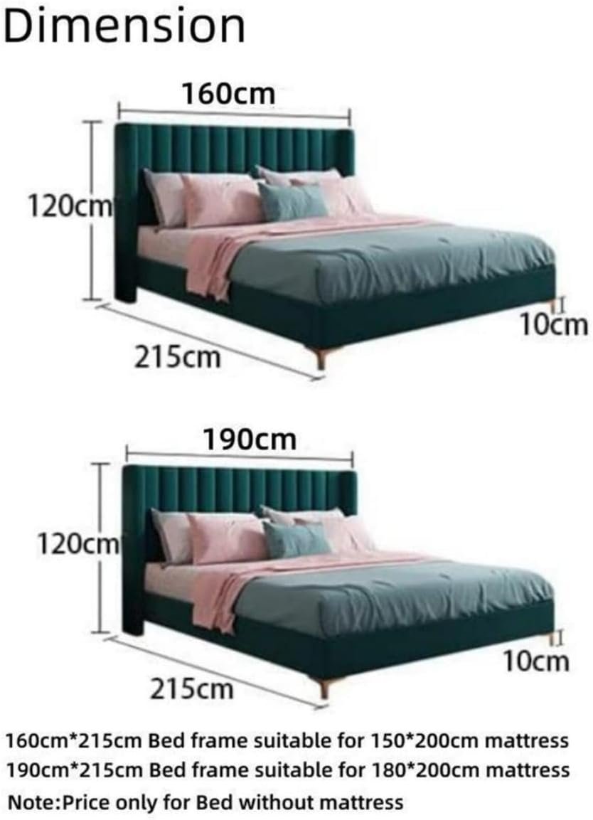 Luxury Luxe Modern King/Queen Bed Frame with Mattress Foundation – Velvet Upholstered Platform Bed, Fleece-Wrapped, Solid Plywood Base (200 x 200 cm With Spring Mattress)