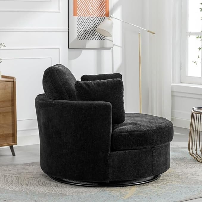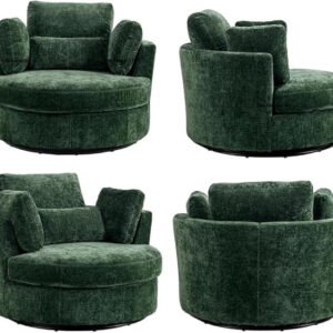 ✨ Elevate your space with the Luxury Luxe Oversized Swivel Accent Chair – a fusion of modern elegance and unbeatable comfort! Designed for relaxation, this 360° rotating round sofa features a plush corduroy finish, ergonomic curved backrest, and ultra-soft foam padding for all-day lounging. Perfect for curling up with a book, binge-watching TV, or adding a chic focal point to your living room, bedroom, or home office. The sturdy metal base supports up to 450lbs, while detachable, machine-washable polyester covers ensure effortless maintenance. With 4 accent pillows for customizable support and a sleek, space-saving design, this chair blends style and function effortlessly. Easy to assemble in 10 minutes – transform your space today!