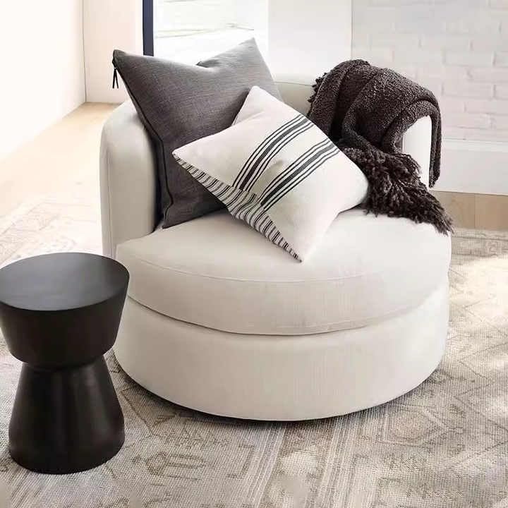 - 🪑 ✨ Sculptural Round Silhouette: Curated curves + modern minimalist legs – a statement piece for Scandi-boho interiors.