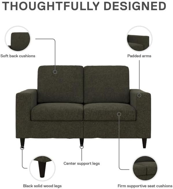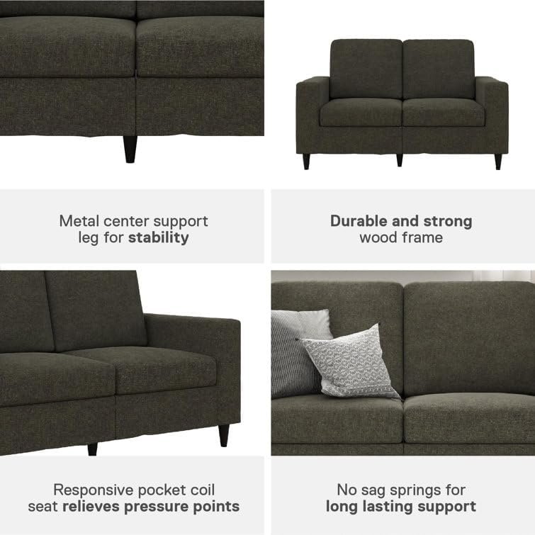 Add modern charm and comfort to your living space with the Luxury Luxe Upholstered Loveseat, a perfect blend of contemporary design and cozy seating. This stylish 2-seater features a streamlined silhouette with square arms, rectangular cushions, and turned solid wood legs for a clean, timeless look. Crafted from solid and engineered wood, the loveseat provides dependable support and durability, making it ideal for apartments, studios, offices, and small living rooms. Enjoy plush relaxation with foam and polyester-filled seat and back cushions, supported by a pocket spring construction for optimal comfort and structure. The upholstery is available in a soft velvet or durable polyester blend and complements any decor style, from minimalist to transitional. With easy, tool-included assembly and a space-efficient design, this loveseat is a smart and stylish choice for any modern home.