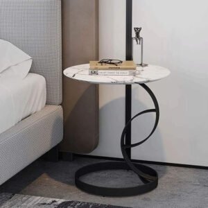 Be the first to review “Modern Round Side Table with Marble Top, Metal Spiral Base, Black and White (White)” Cancel reply
