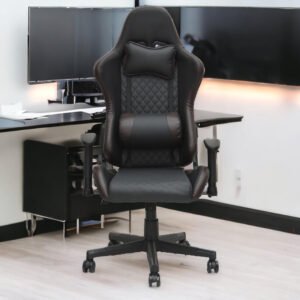 Crafted from high-quality PU leather in an elegant black and brown finish, this chair is both stylish and practical, offering a smooth, easy-to-clean surface. The integrated lumbar support and back support help maintain proper posture, reducing fatigue during extended use. Whether you’re gaming at your PC, working from home, or studying, this chair ensures all-day comfort.